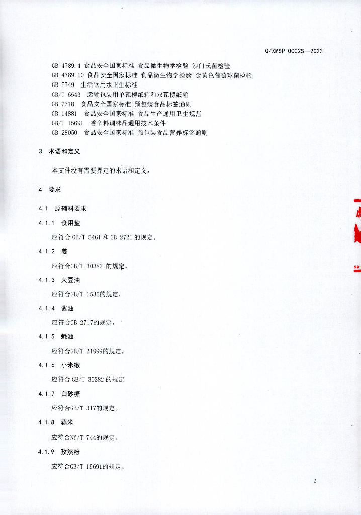 Q/XPXSP 0001S-2023 调味酱腌菜