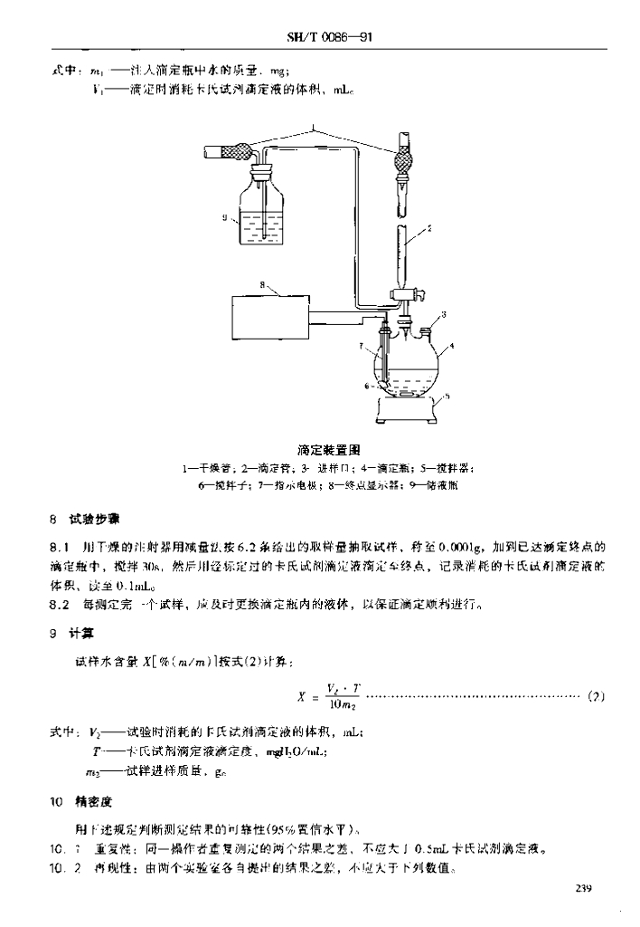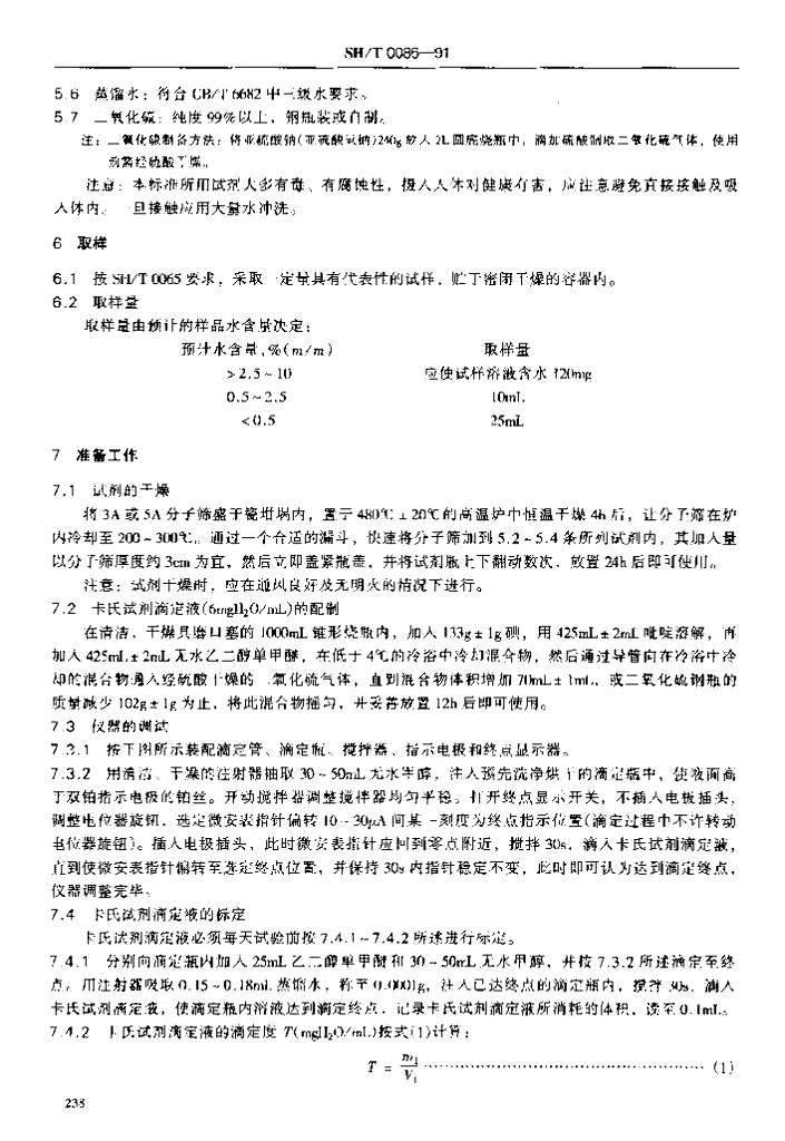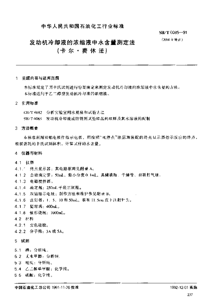 SH/T 0086-1991 发动机冷却液的浓缩液中水含量测定法(卡尔.费休法)