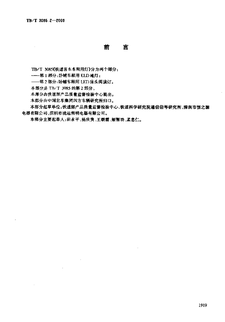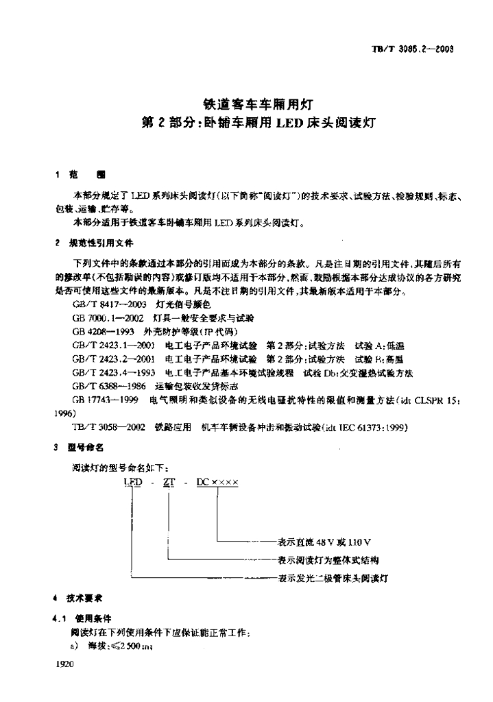 TB/T 3085.2-2003 铁道客车车厢用灯 第2部分:卧铺车厢用LED床头阅读灯