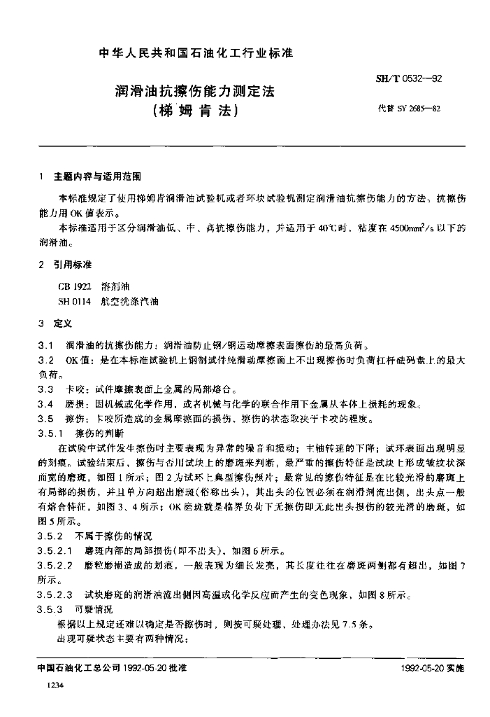 SH/T 0532-1992 润滑油抗擦伤能力测定法(梯姆肯法)