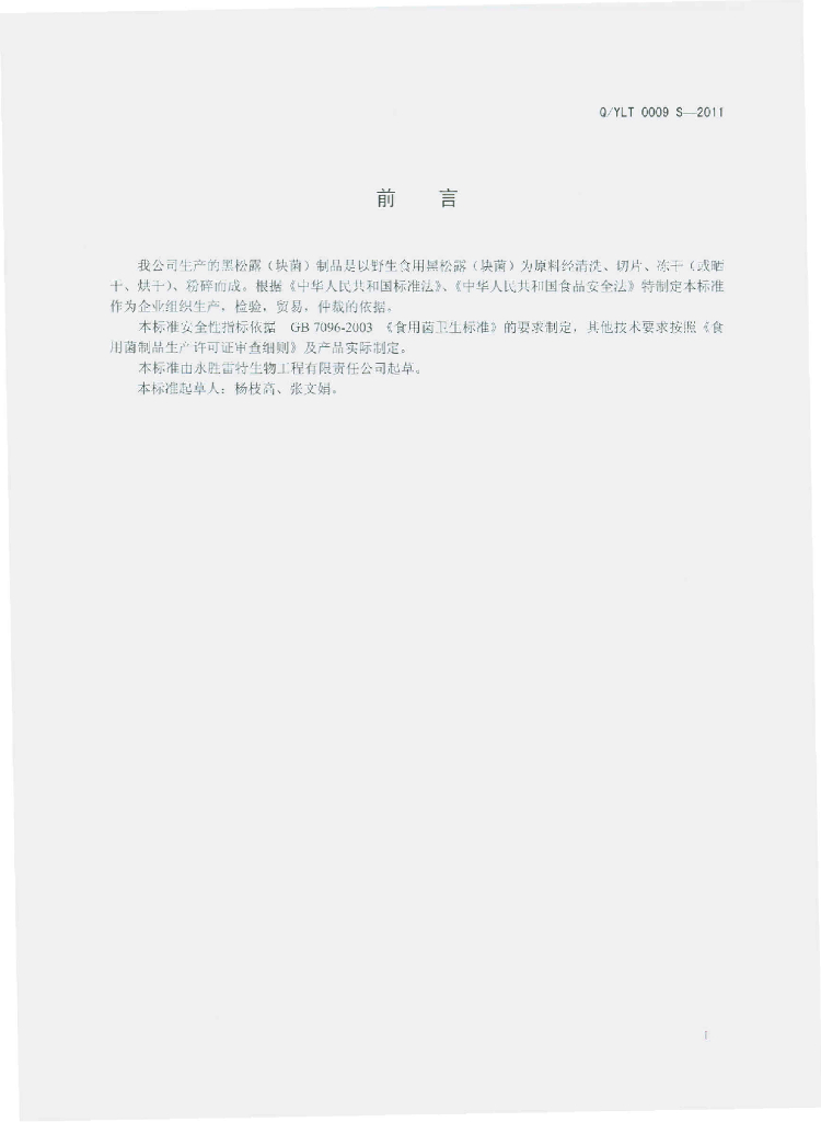 Q/YLT 0009S-2011 黑松露(块菌)制品