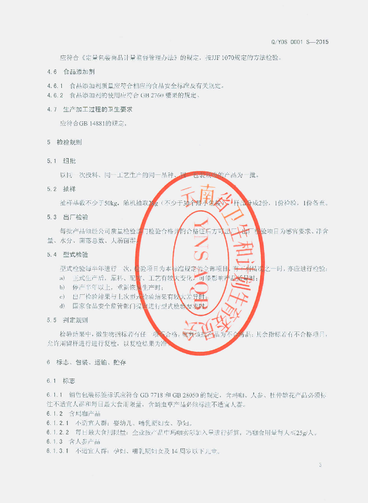 Q/YDS 0001S-2015 云南耀东生物科技有限公司 辣木叶压片糖果