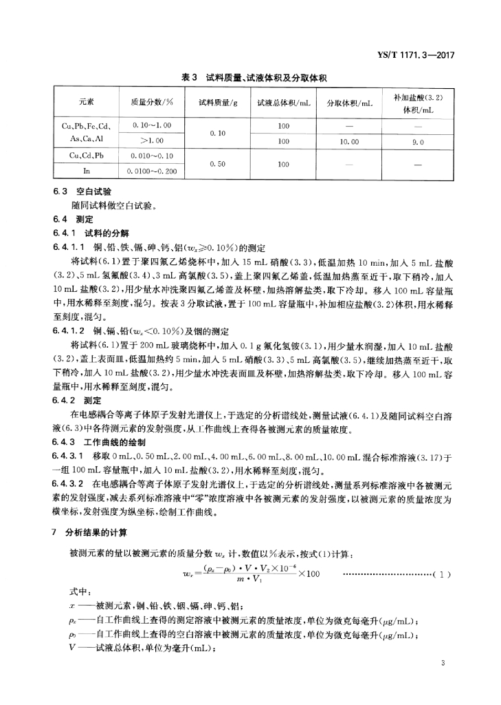 YS/T 1171.3-2017 再生锌原料化学分析方法 第3部分:铜、铅、铁、铟、镉、砷、钙和铝量的测定电感耦合等离子体原子发射光谱法
