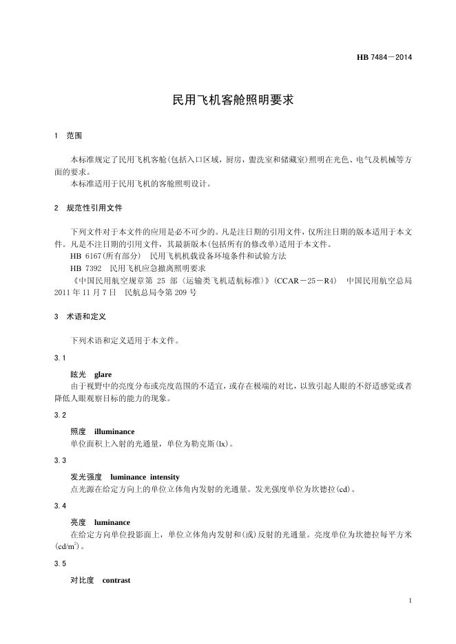 HB 7484-2014(2017) 民用飞机客舱照明要求