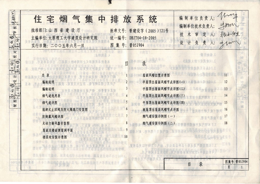晋05J904 住宅烟气集中排放系统图集