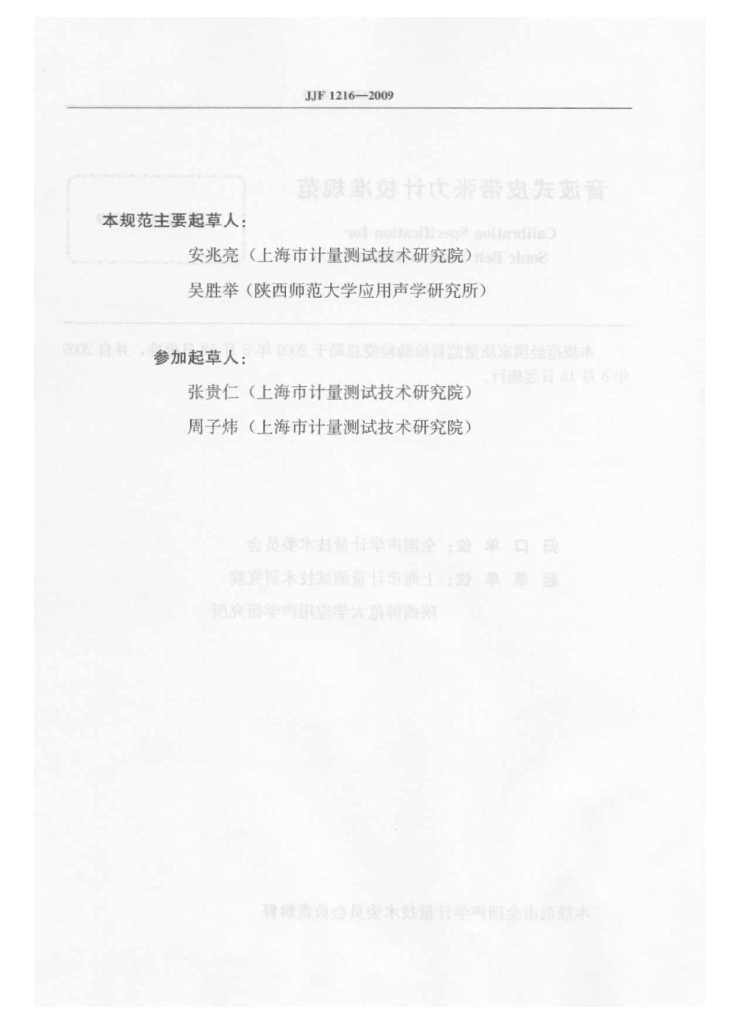 安兆亮(上海市计量测试技术研究院)、吴胜举(陕西师范大学应用声学研究所)、张贵仁(上海市计量测试技术研究院)、周子炜(上海市计量测试技术研究院)