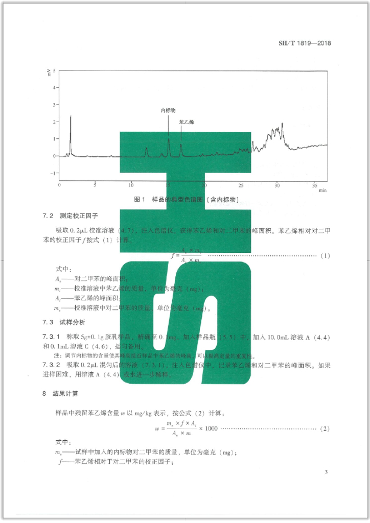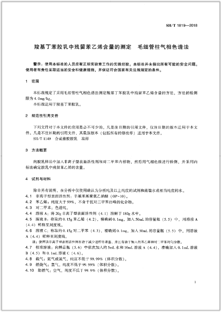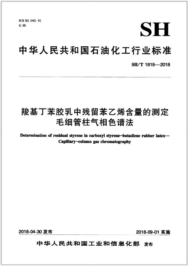 SH/T 1819-2018 羧基丁苯胶乳中残留苯乙烯含量的测定 毛细管柱气相色谱法