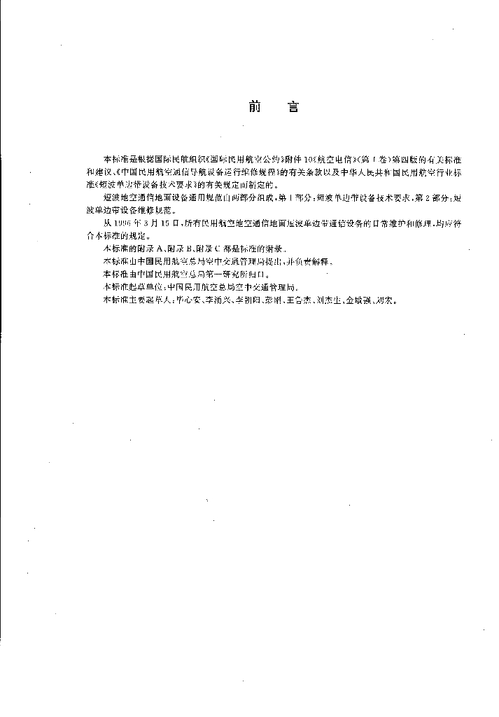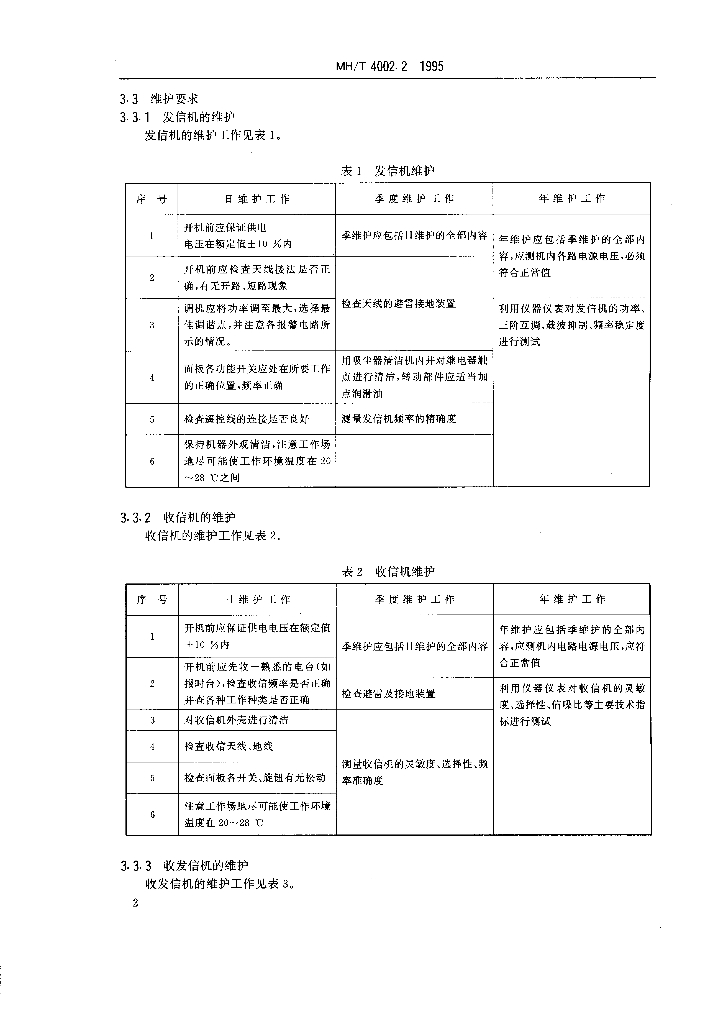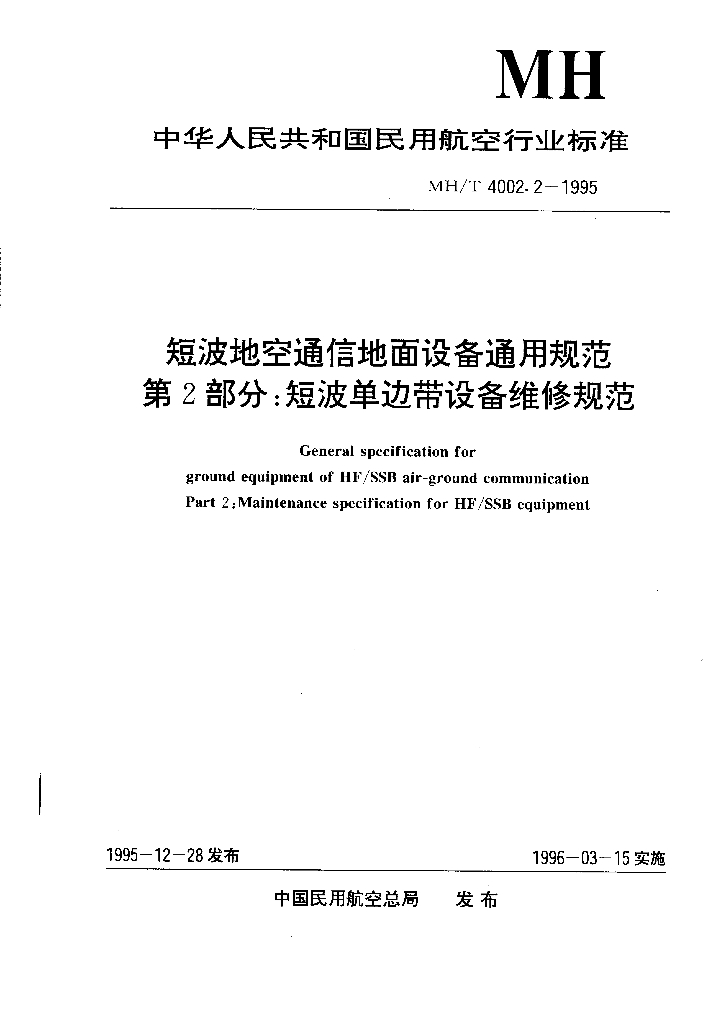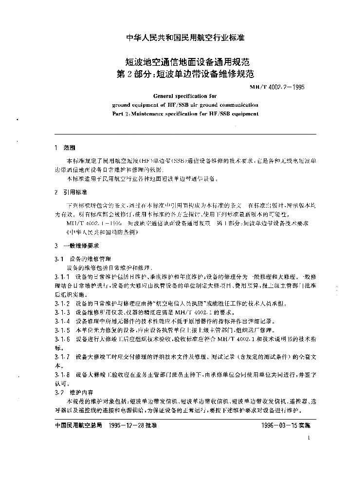 MH/T 4002.2-1995 短波地空通信地面设备通用规范 第2部分:短波单边带设备维修规范