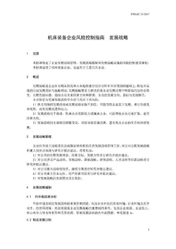 T/WLJC 33-2017 机床装备企业风险控制指南 发展战略