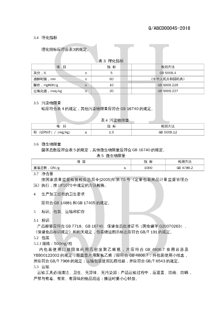 Q/ABCD 0004S-2018 明安旭牌灵芝孢子油软胶囊
