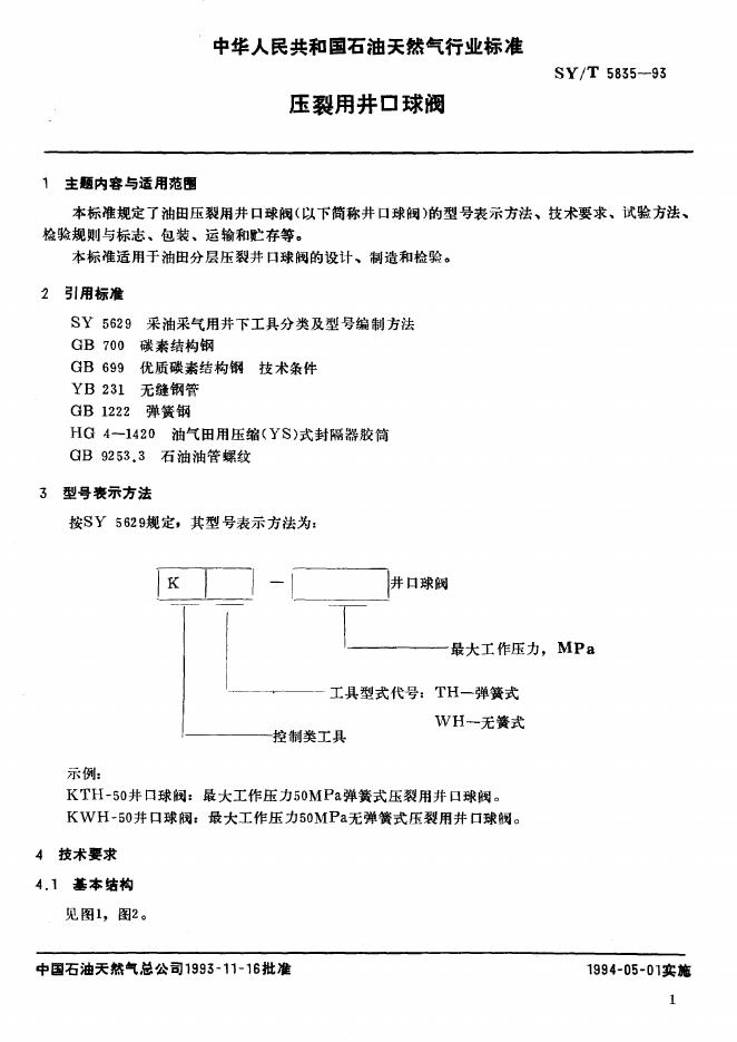 SY/T 5835-1993 压裂用井口球阀