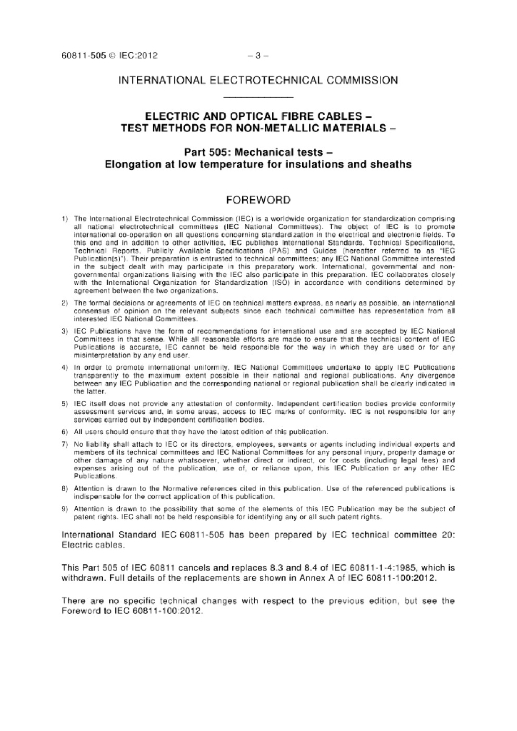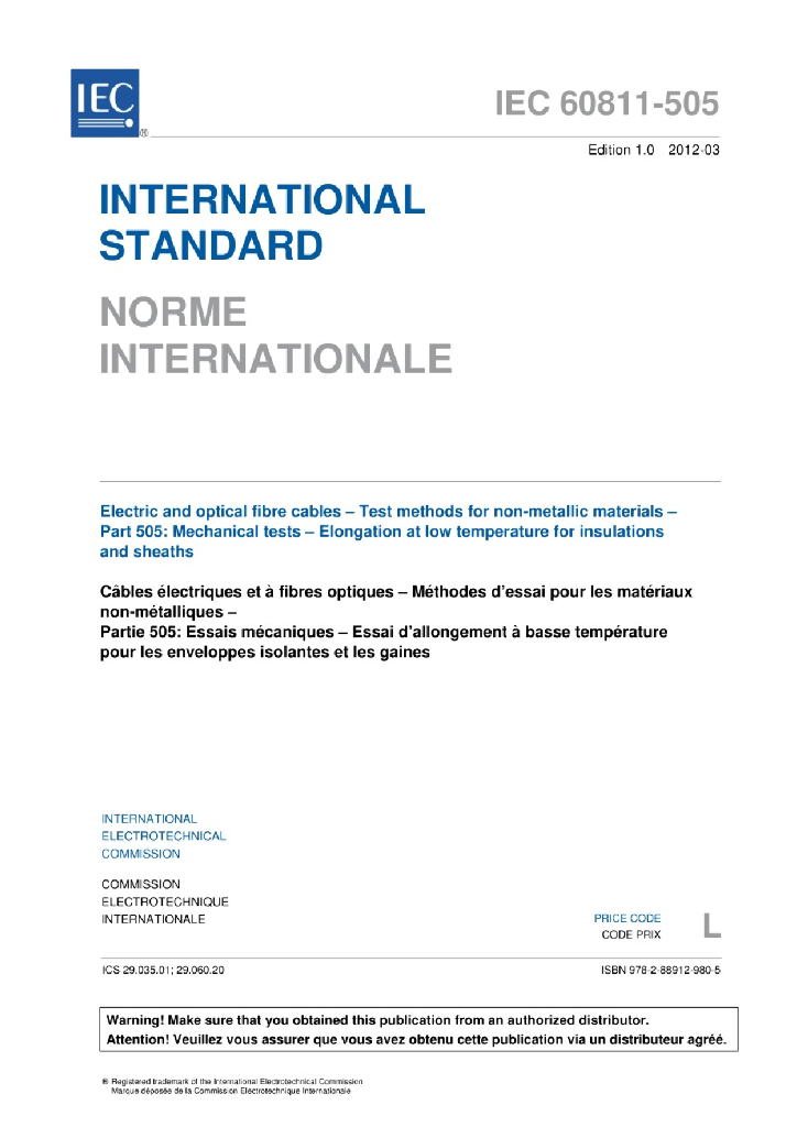 IEC 60811-505:2012 电缆和光缆 非金属材料的试验方法 第505部分:机械性能试验 绝缘材料和护套的低温伸长率