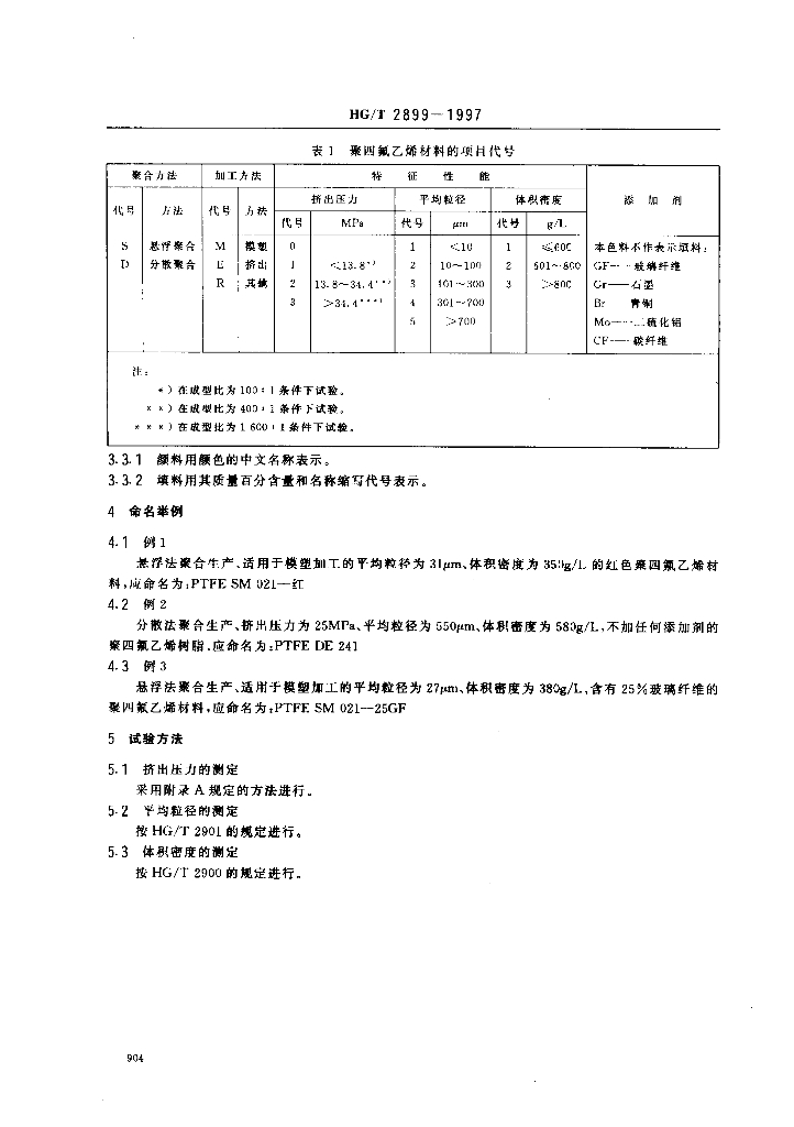 HG/T 2899-1997 聚四氟乙烯材料命名