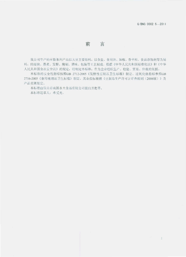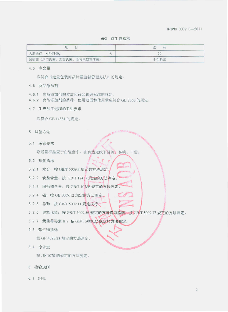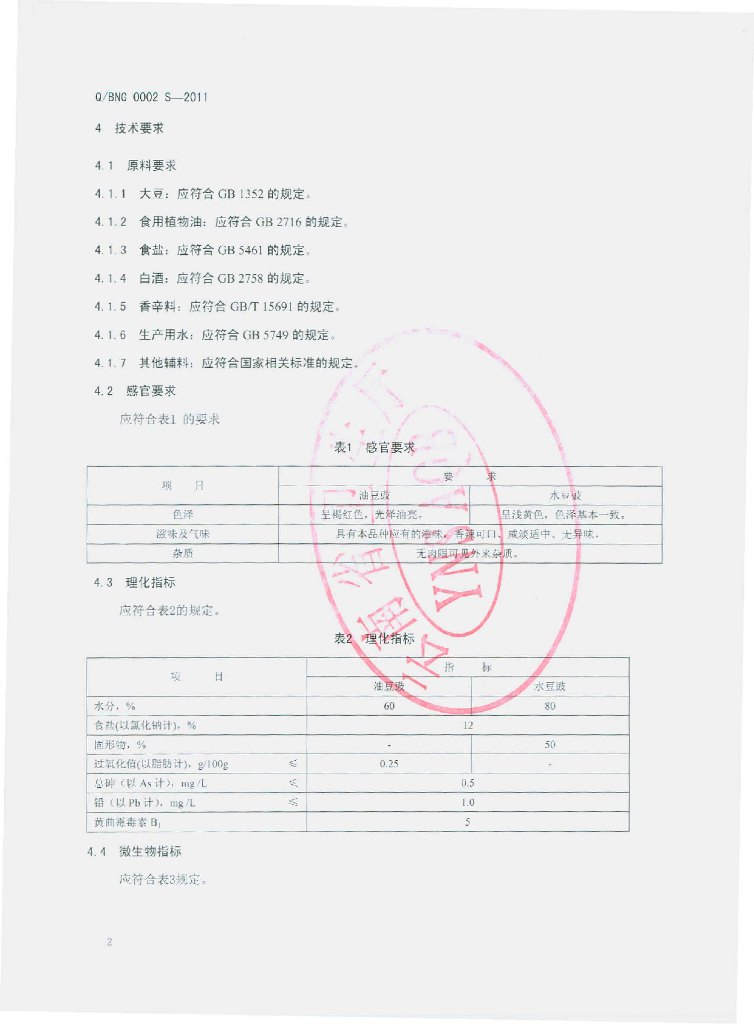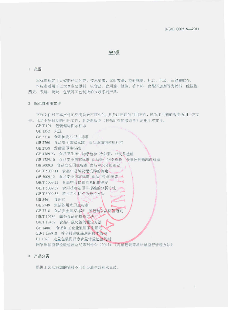 Q/BNG 0002S-2011 豆豉