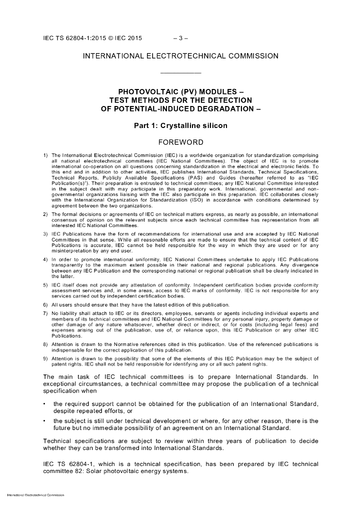 IEC/TS 62804-1-2015 光伏(PV) 模块 检测潜在降解的试验方法 第1部分:晶体硅