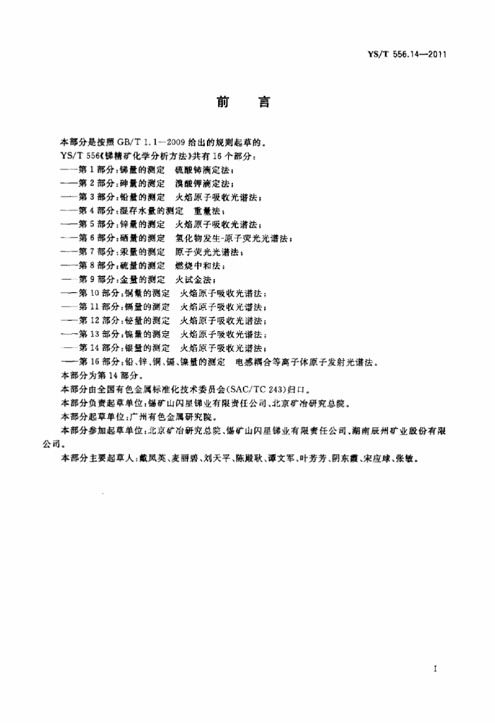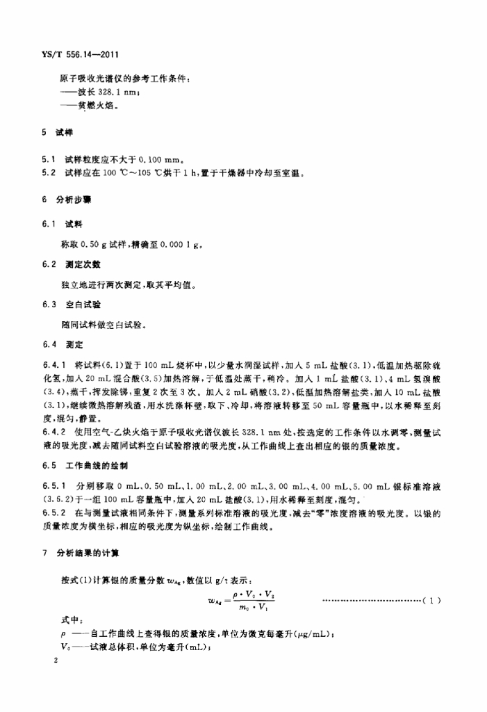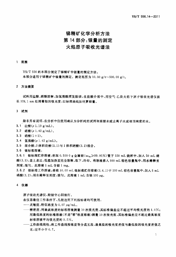 YS/T 556.14-2011 锑精矿化学分析方法 第14部分:银量的测定 火焰原子吸收光谱法