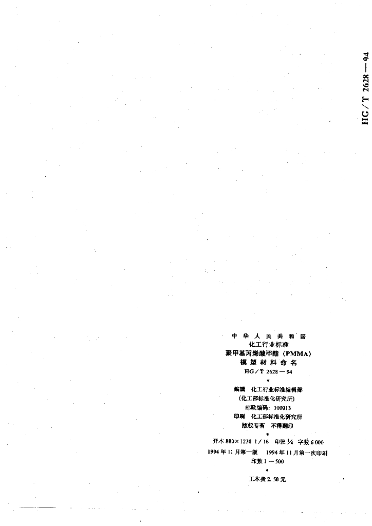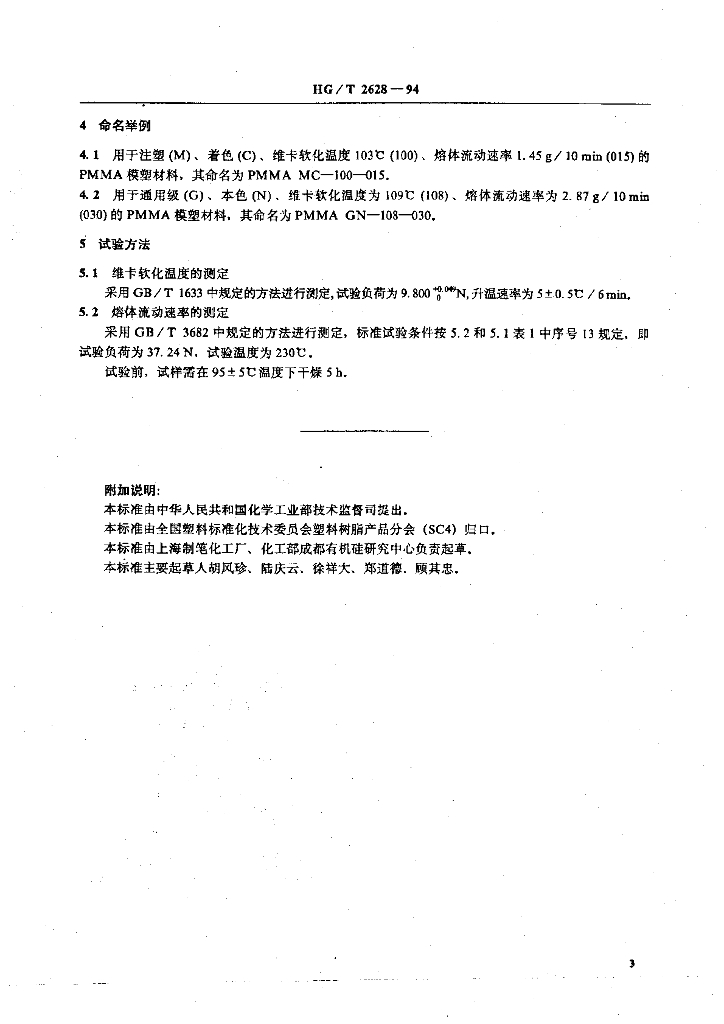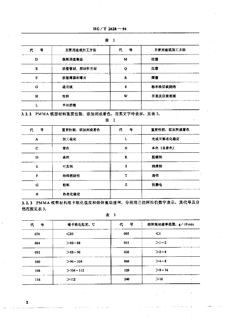 HG/T 2628-1994 聚甲基丙烯酸甲酯(PMMA) 模塑材料命名