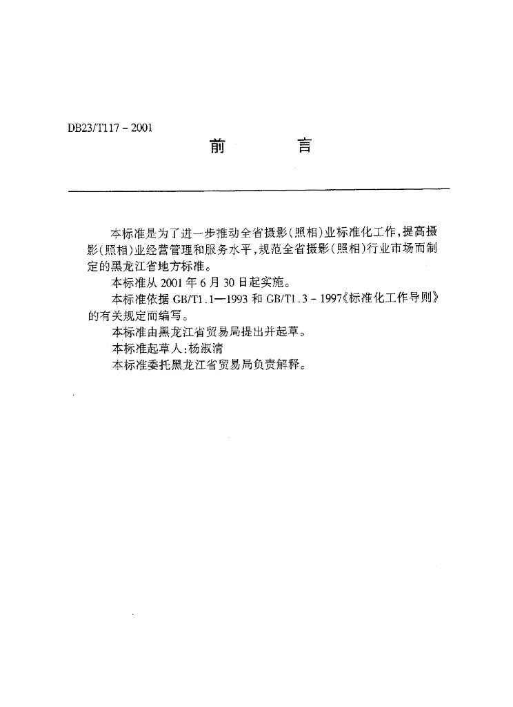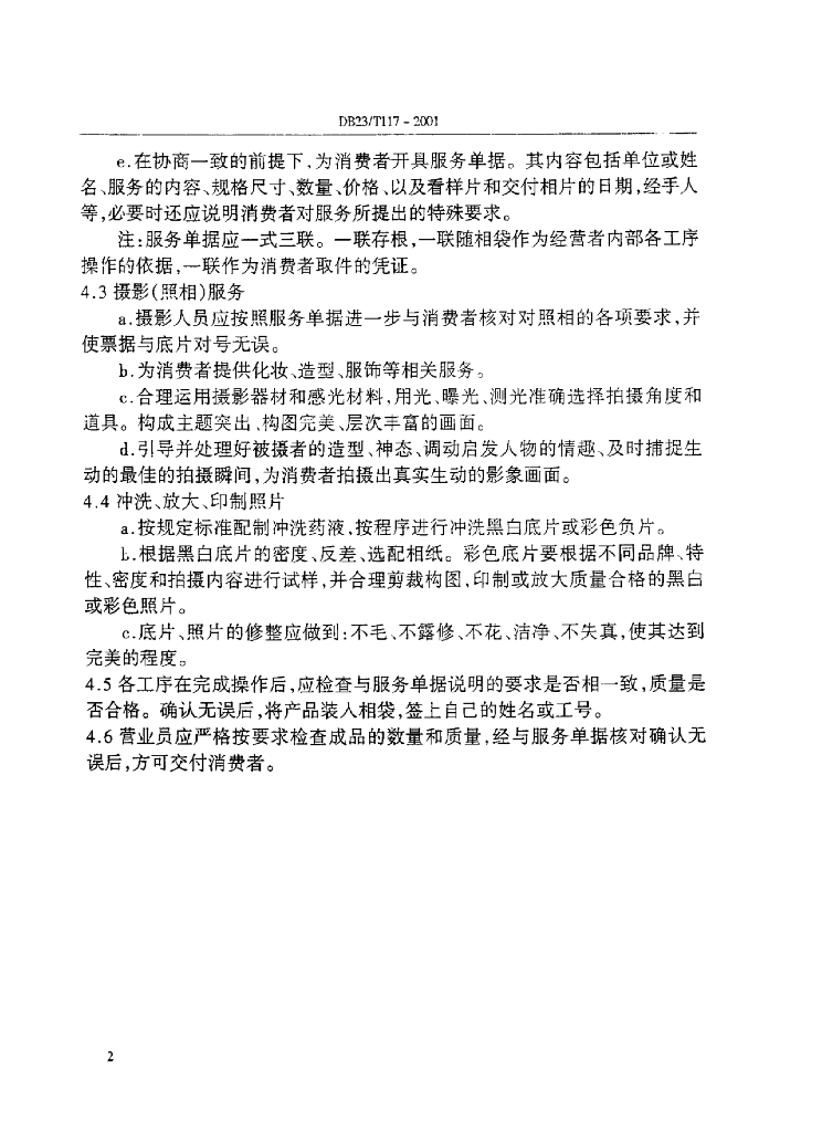 DB23/T 117-2001 摄影(照相)业服务操作规程