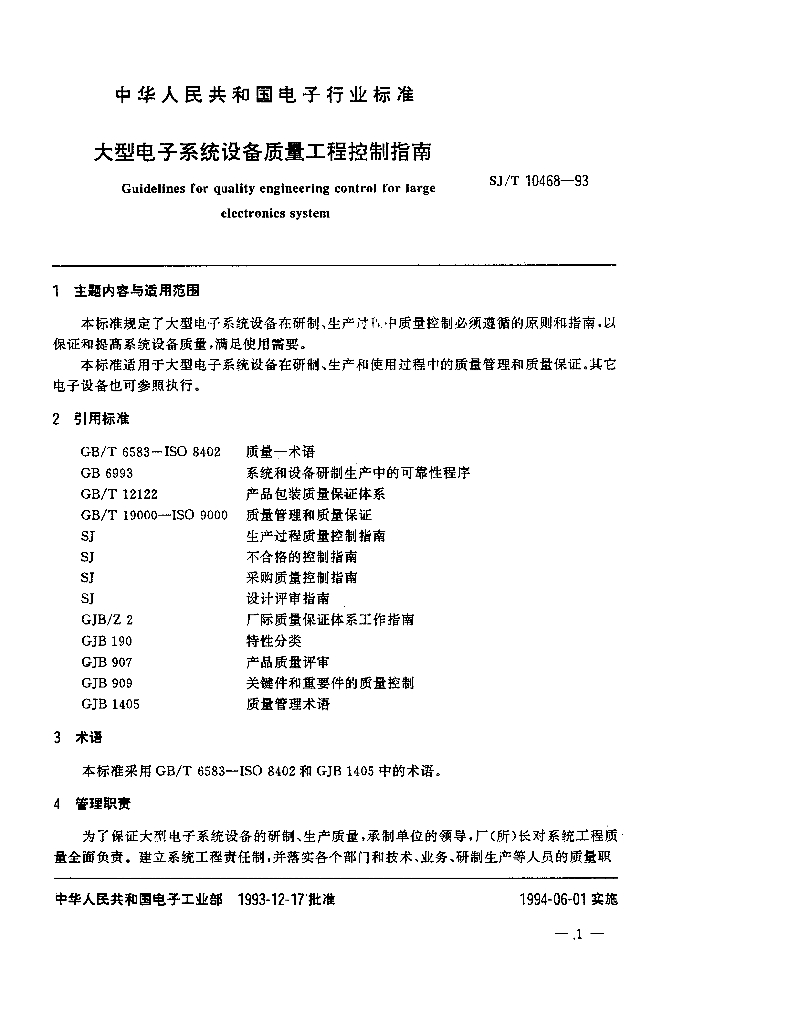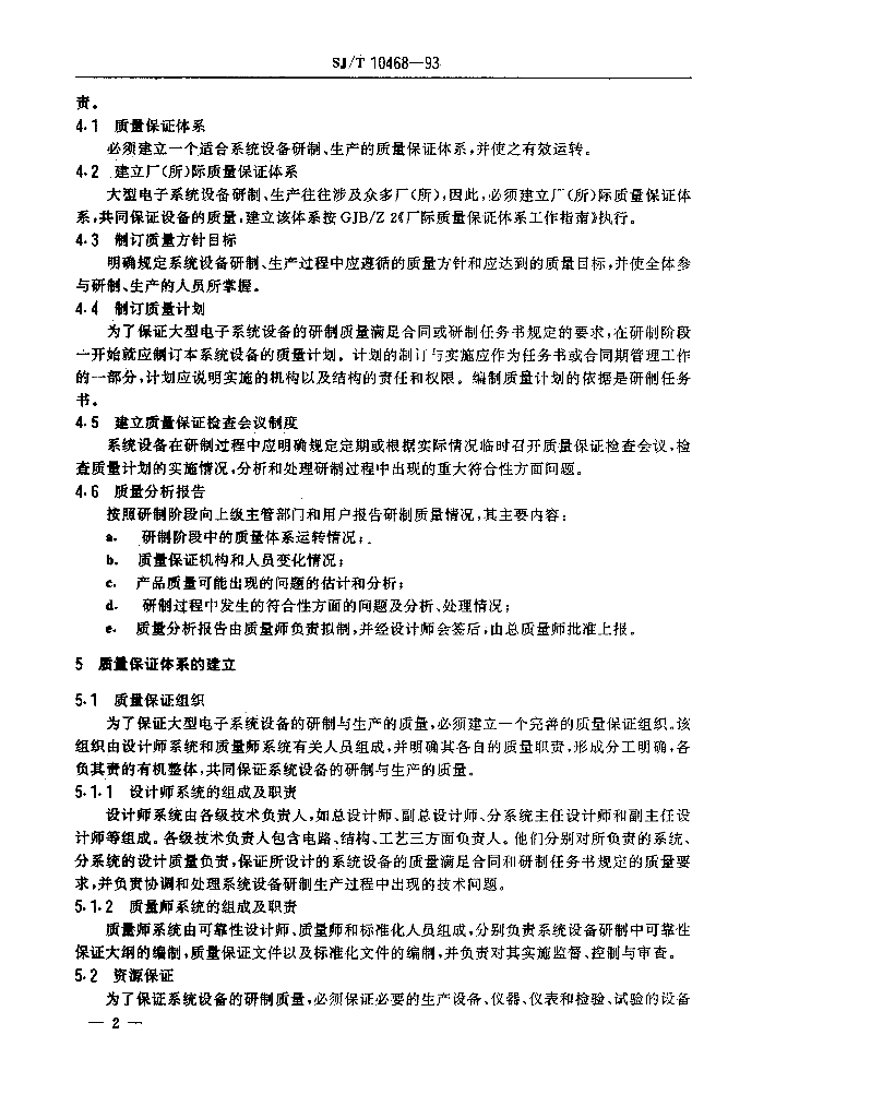 SJ/T 10468-1993 大型电子系统设备质量工程控制指南