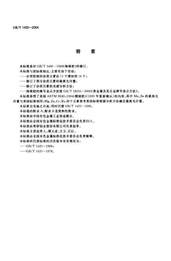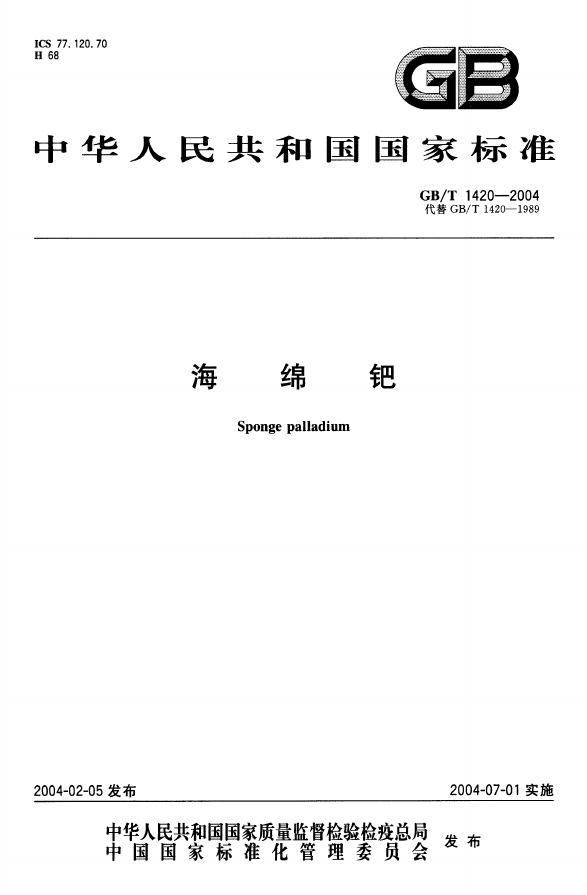 GB/T 1420-1989 海绵钯