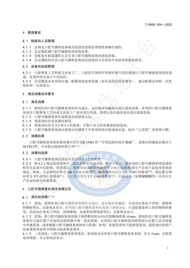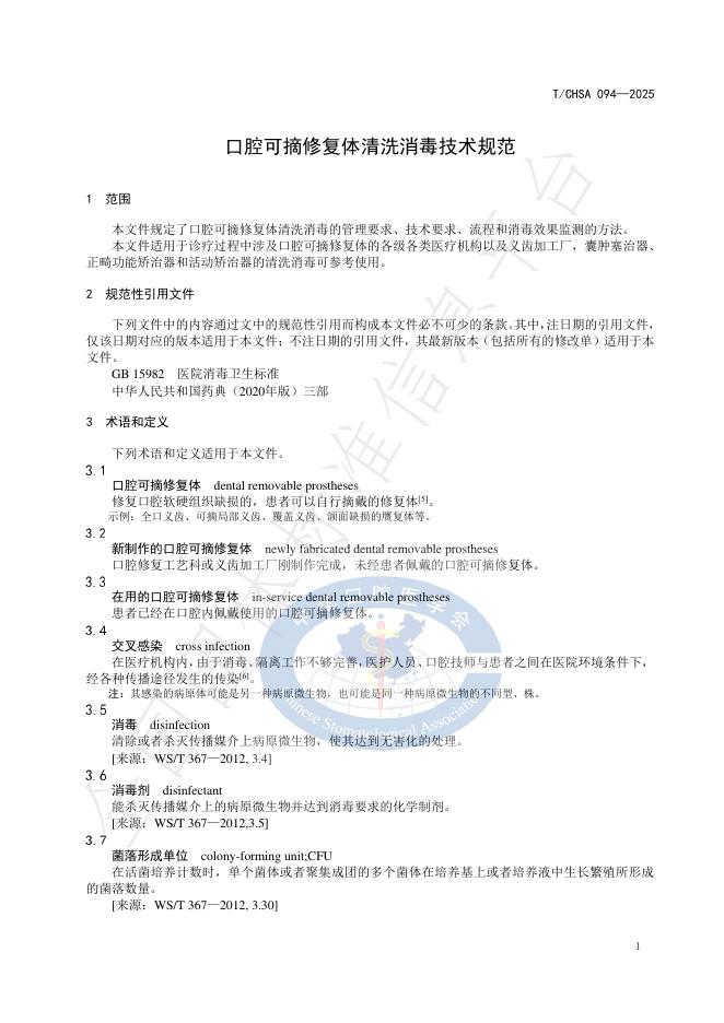 T/CHSA 094-2025 口腔可摘修复体清洗消毒技术规范