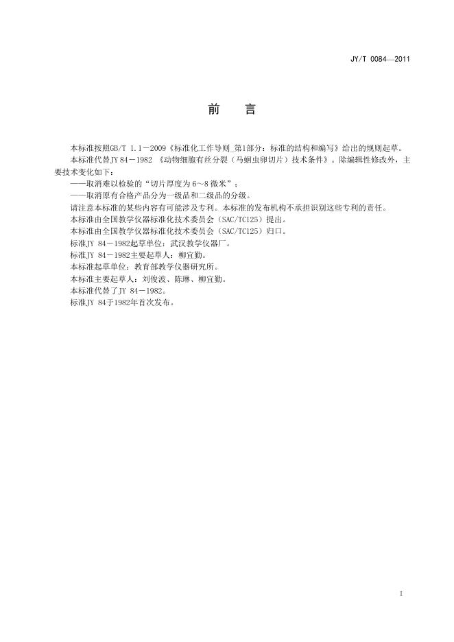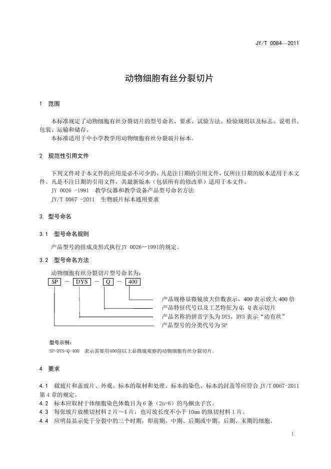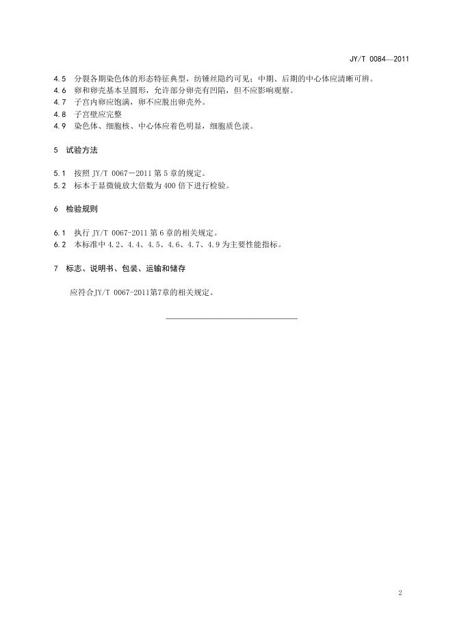 JY/T 0084-2011 动物细胞有丝分裂切片
