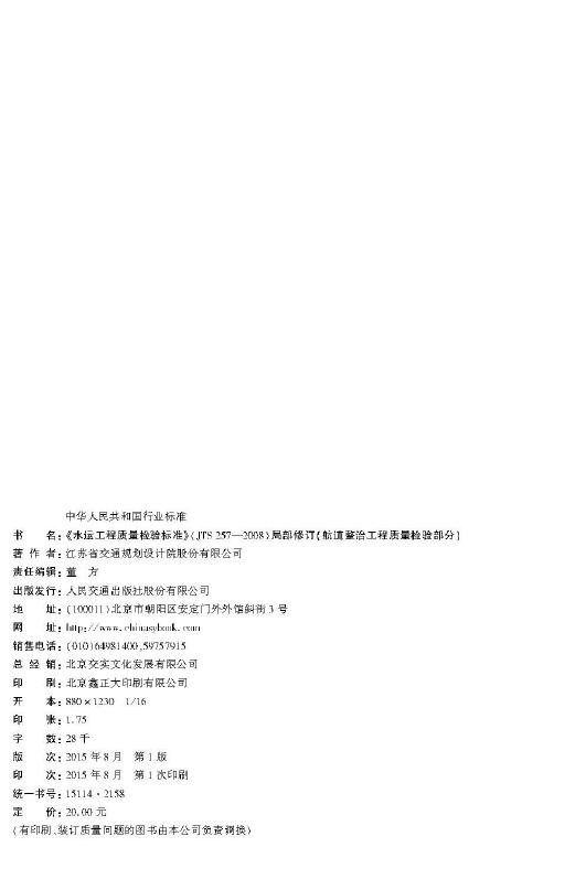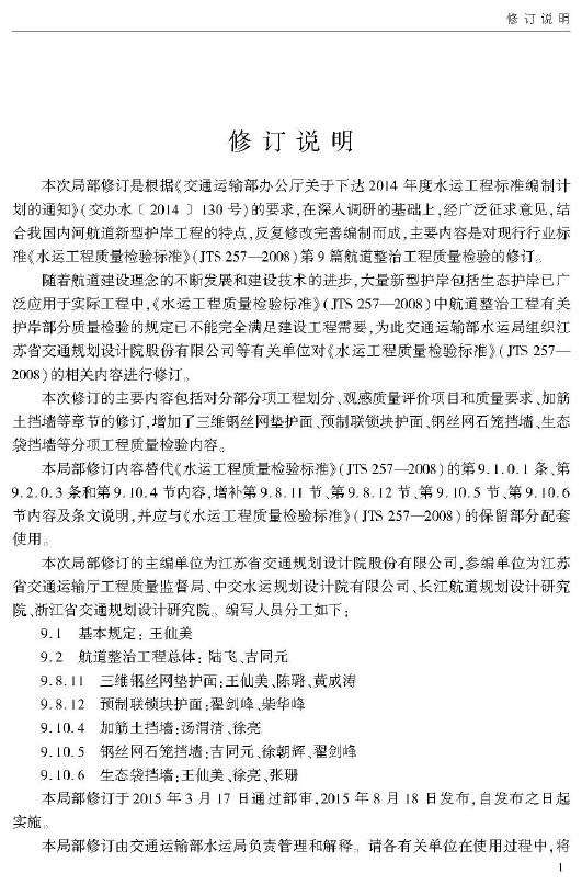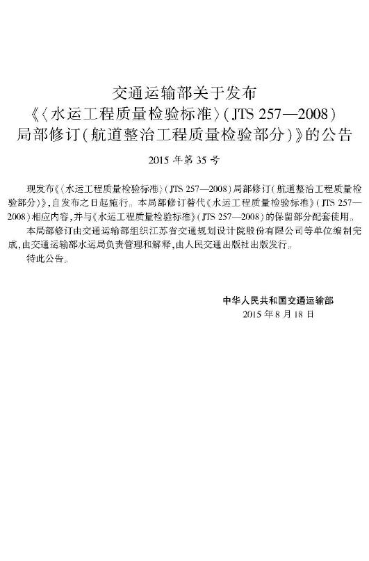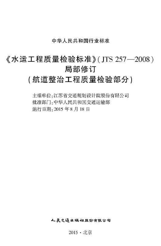 JTS 257-2008 水运工程质量检验标准(局部修订)航道整治工程质量检验部分