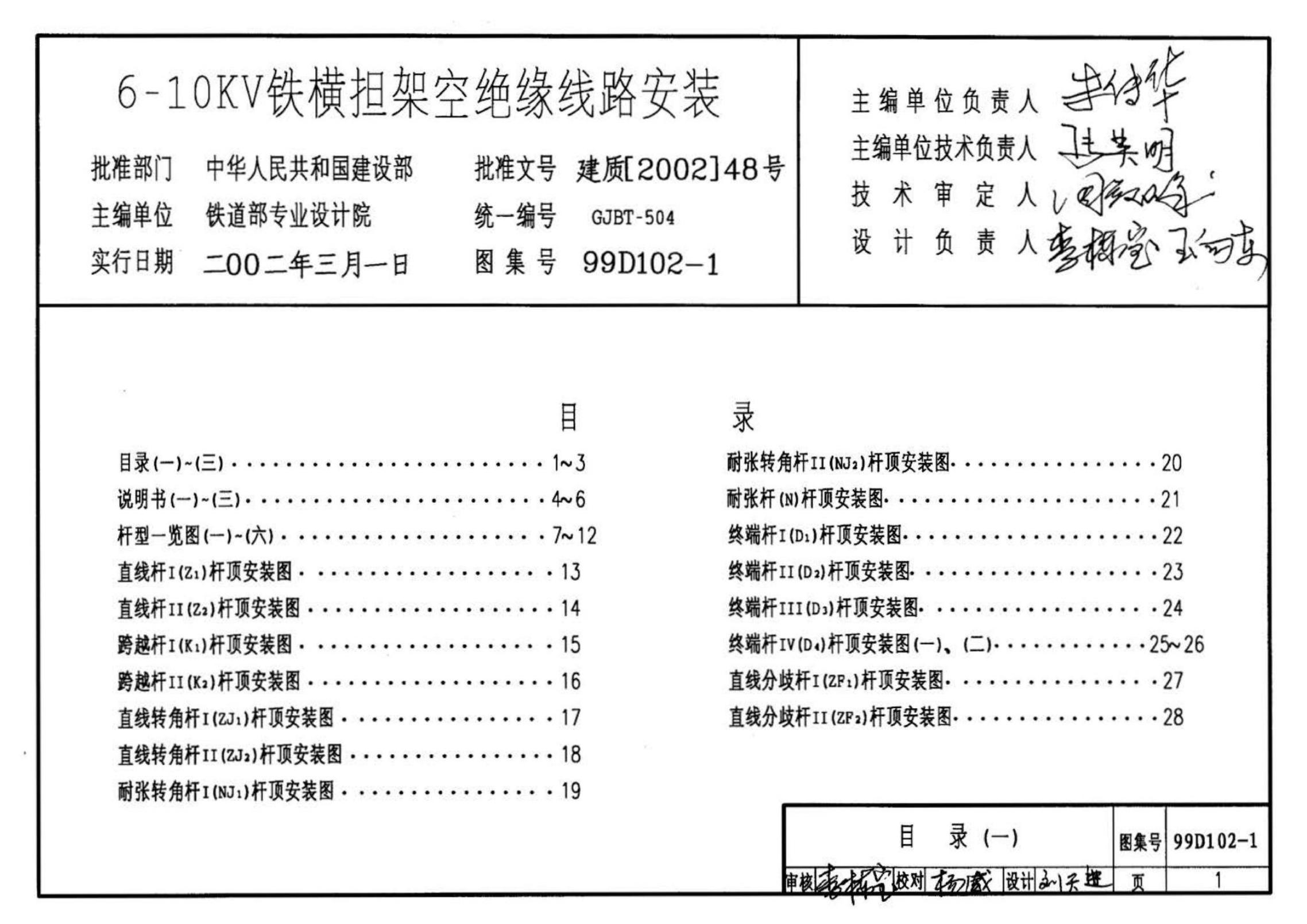 D102-1~2 10kV及以下架空绝缘线路安装设计图集(2002年合订本)