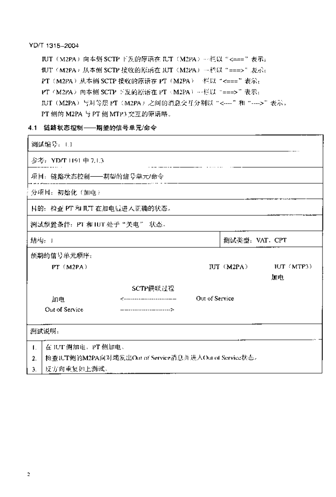 YD/T 1315-2004 No.7 信令与 IP 互通适配层测试方法——消息传递部分(MTP)第二级对等适配层(M2PA)