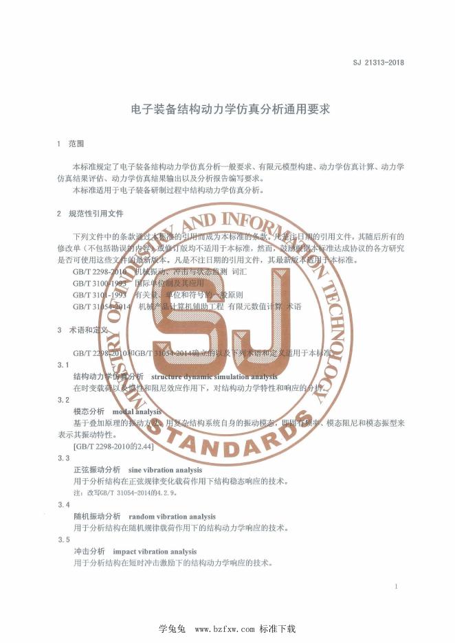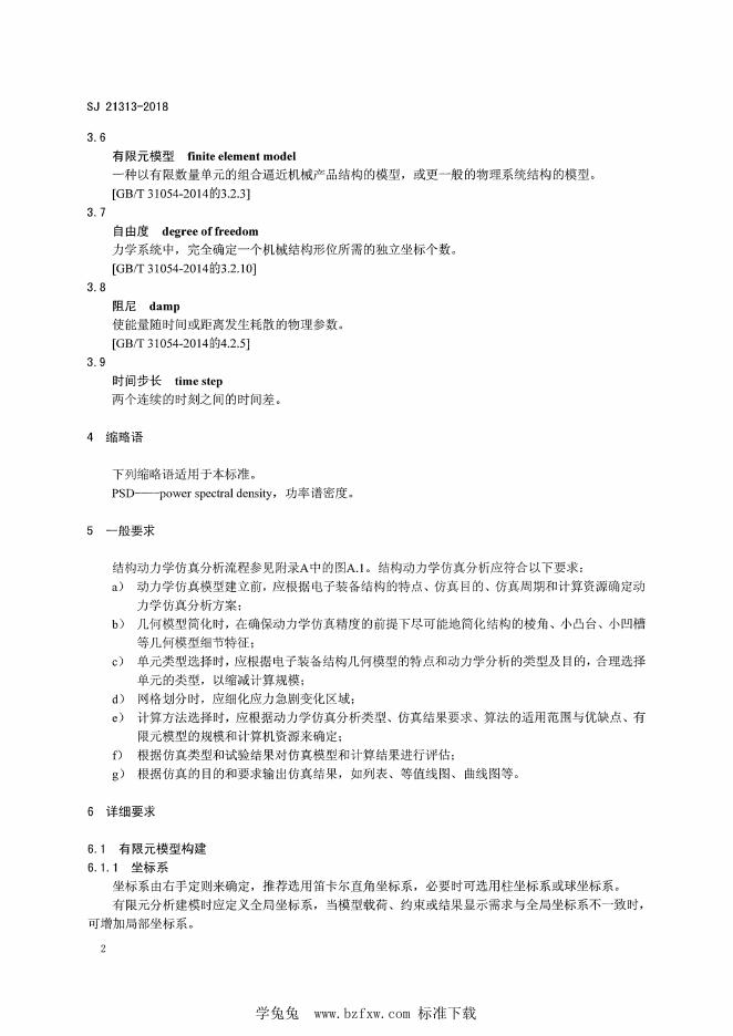 SJ 21313-2018 电子装备结构动力学仿真分析通用要求