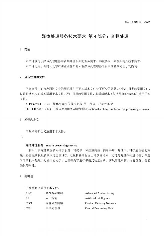 YD/T 6391.4-2025 媒体处理服务技术要求 第4部分:音频处理