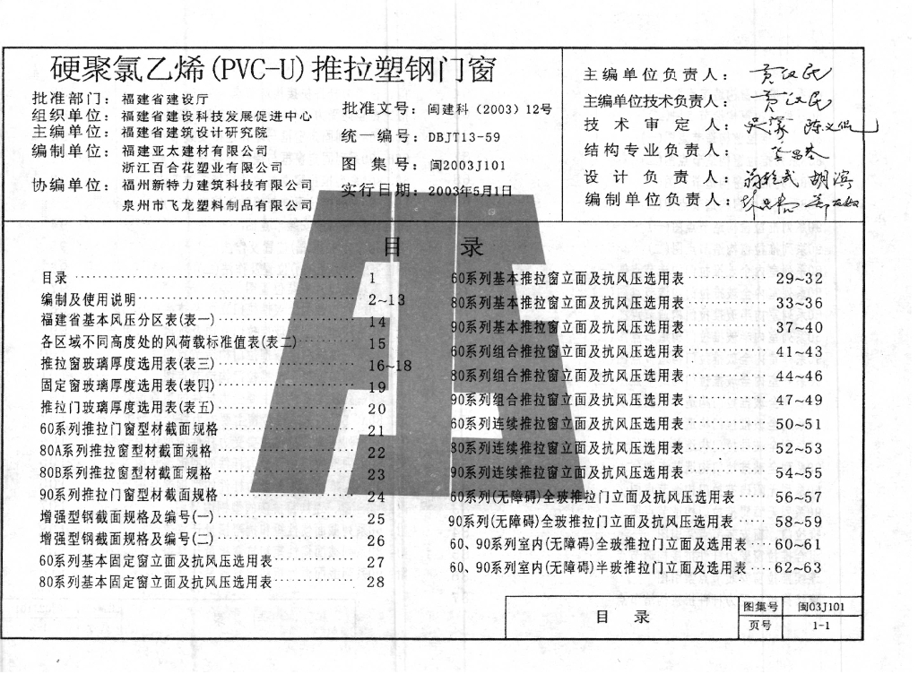 闽2003J101 硬聚氯乙烯(PVC-U)推拉塑钢门窗图集
