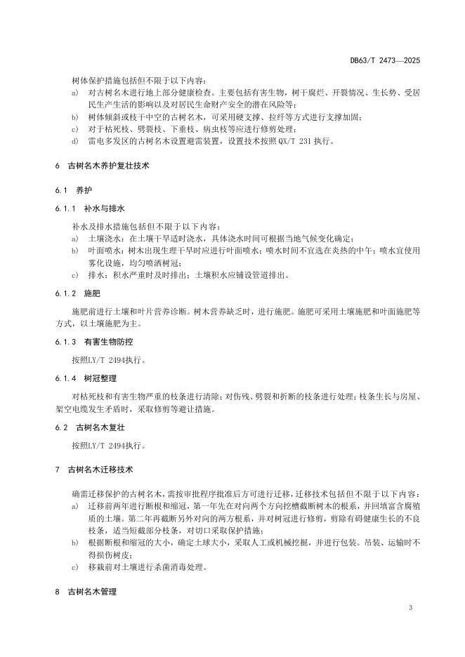 DB63/T 2473-2025 古树名木保护复壮及管理技术规范