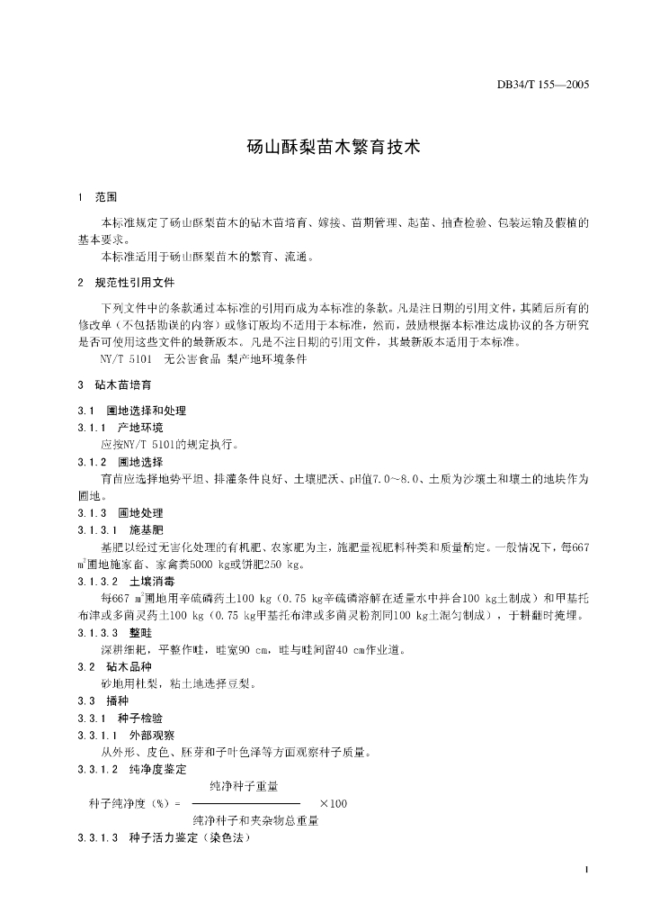 DB34/T 155-2005 砀山酥梨苗木繁育技术