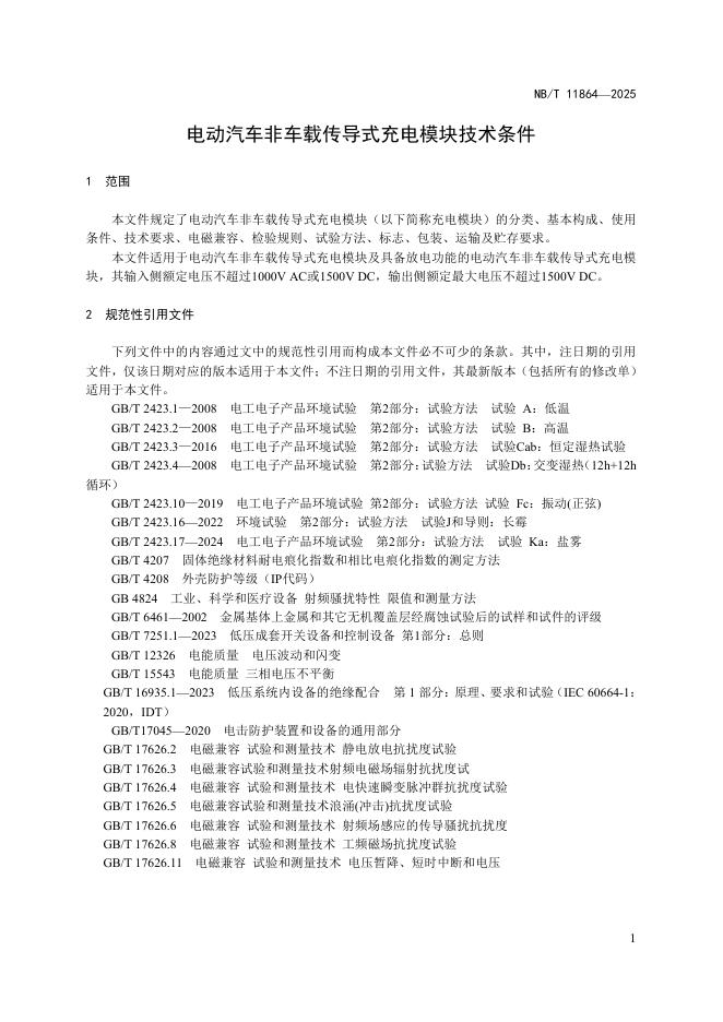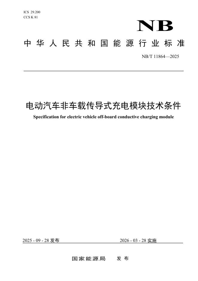 NB/T 11864-2025 电动汽车非车载传导式充电模块技术条件