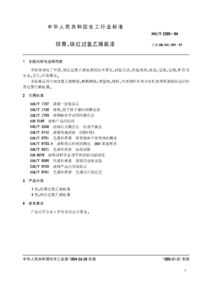 HG/T 2595-1994 锌黄、铁红过氯乙烯底漆