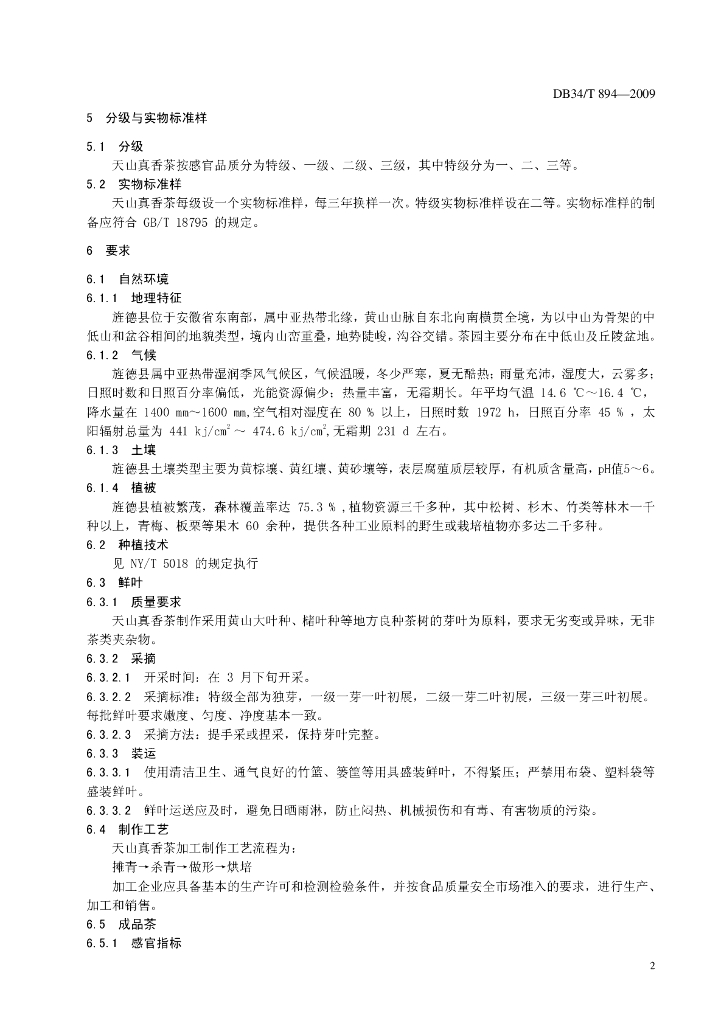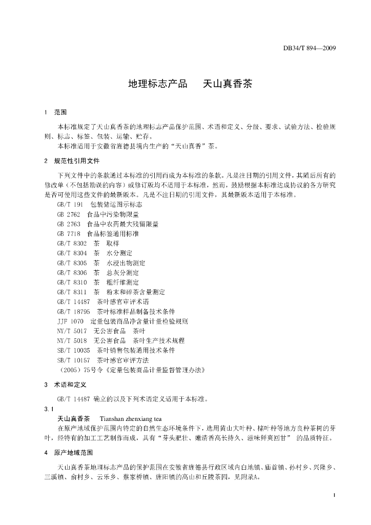 DB34/T 894-2009 地理标志产品 天山真香茶