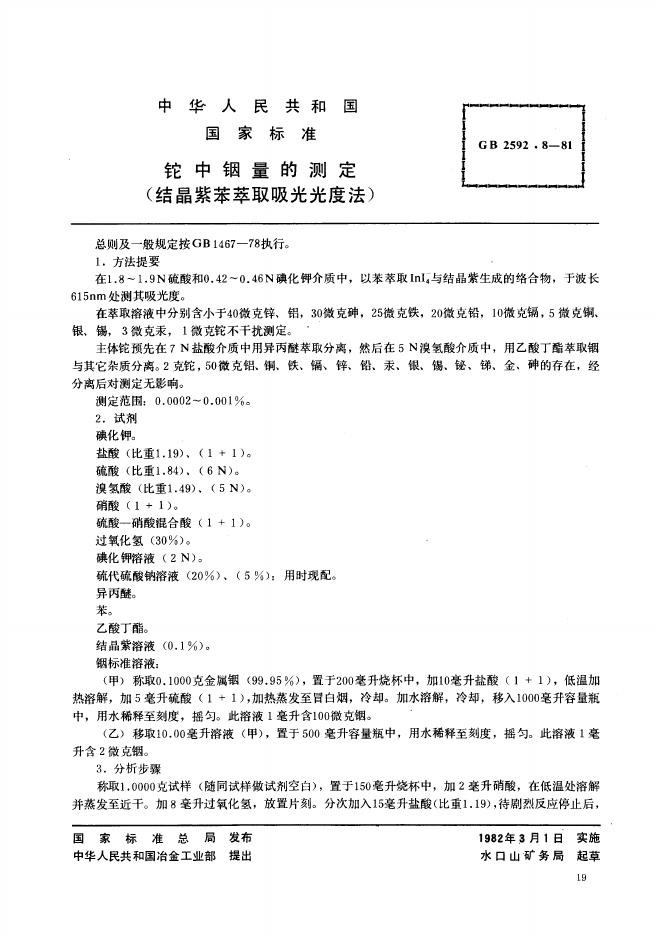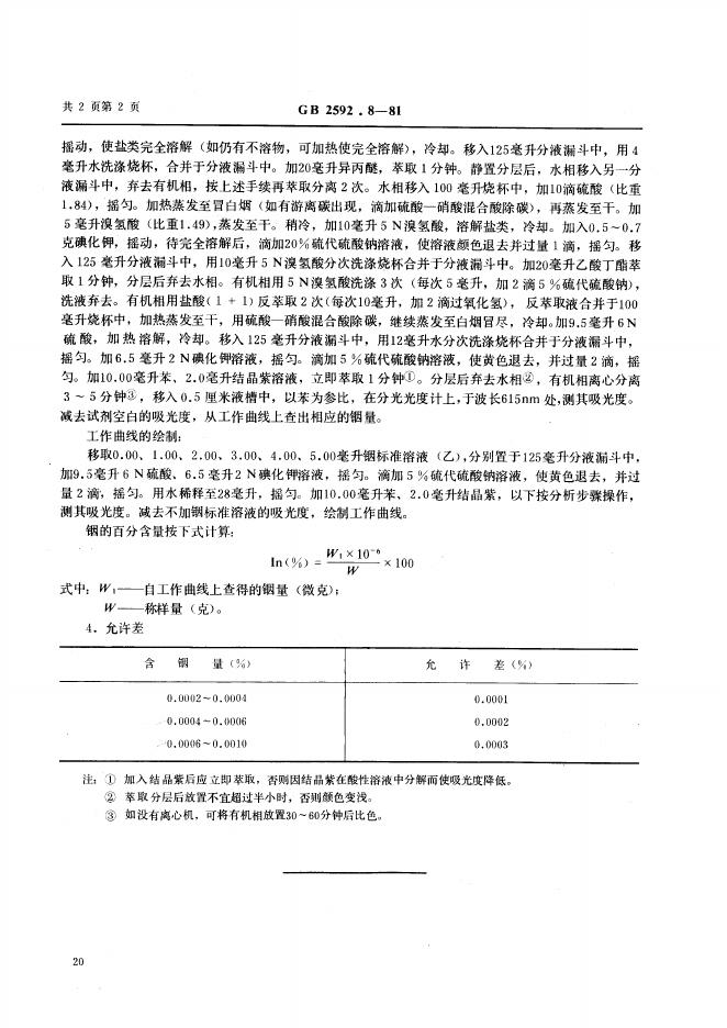 GB/T 2592.8-1981 铊中铟量的测定 结晶紫苯萃取吸光光度法