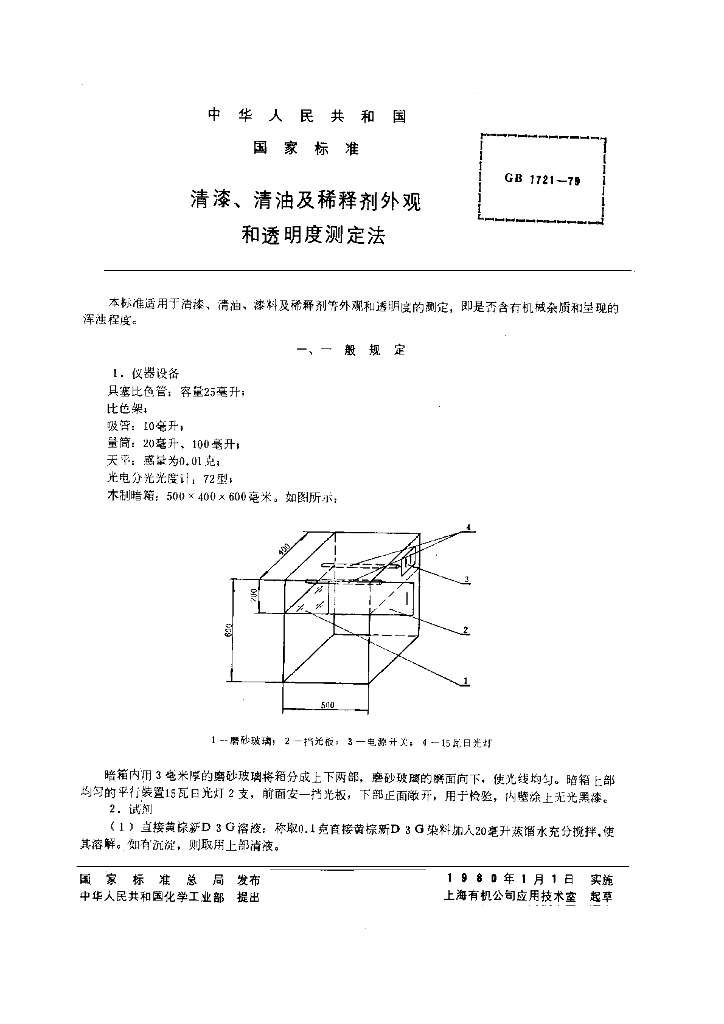 GB/T 1721-1979 清漆、清油及稀释剂外观和透明度测定法