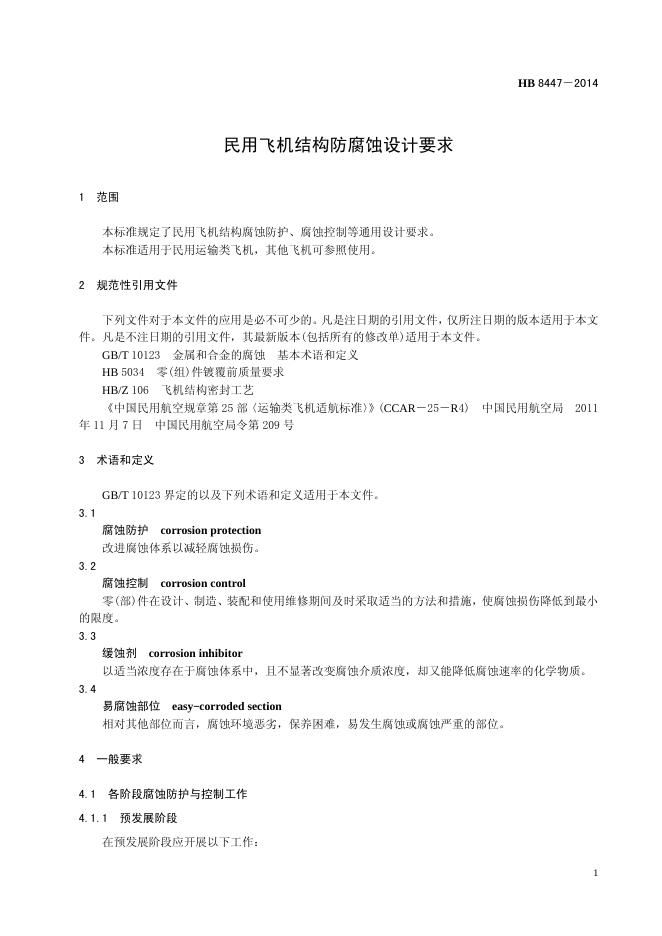 HB 8447-2014(2017) 民用飞机结构防腐蚀设计要求