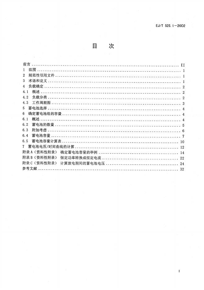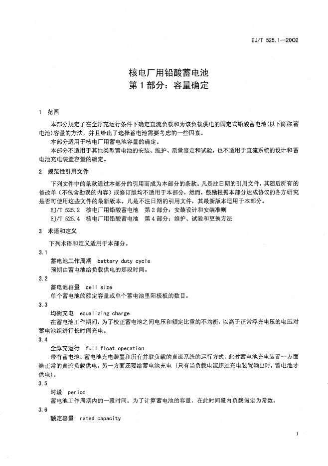 EJ/T 525.1-2002 核电厂用铅酸蓄电池 第1部分:容量确定