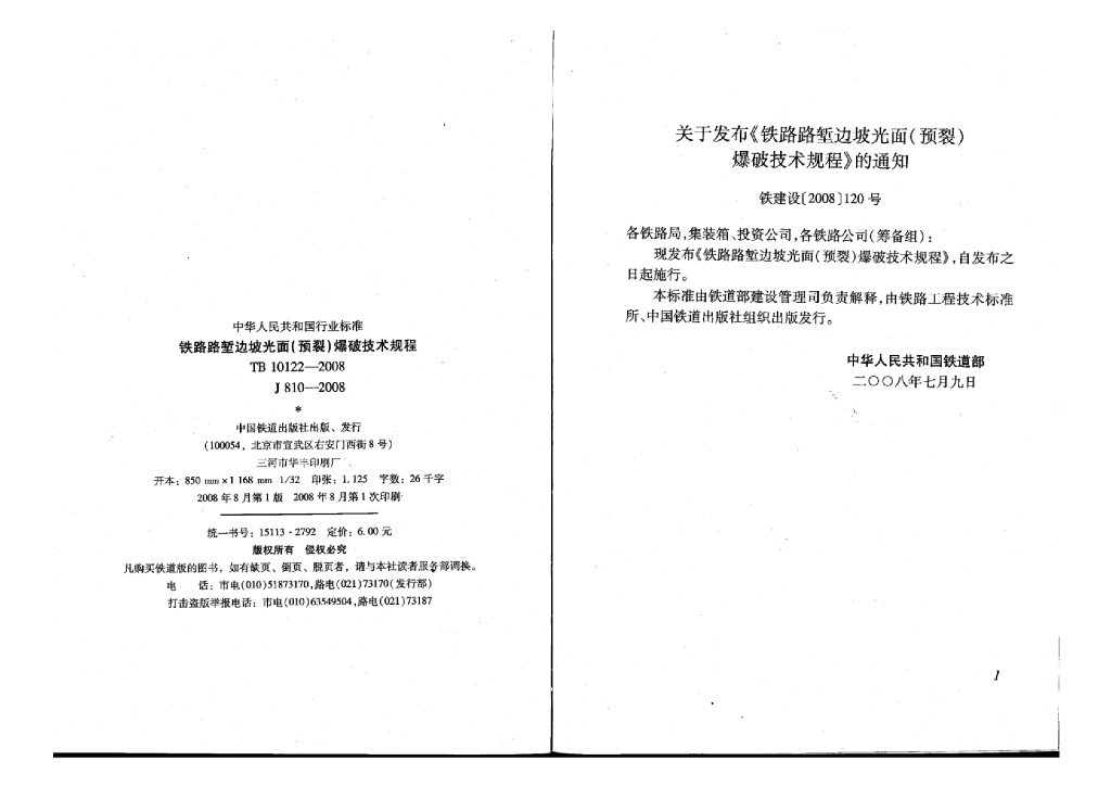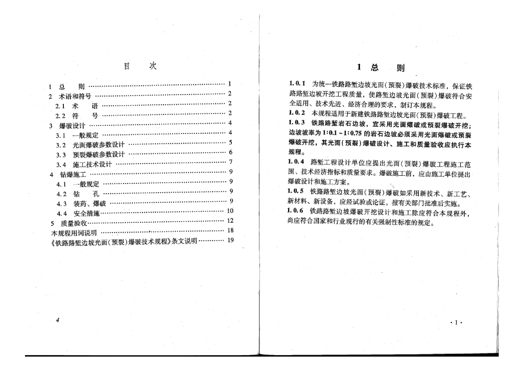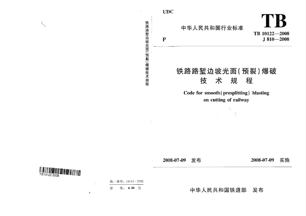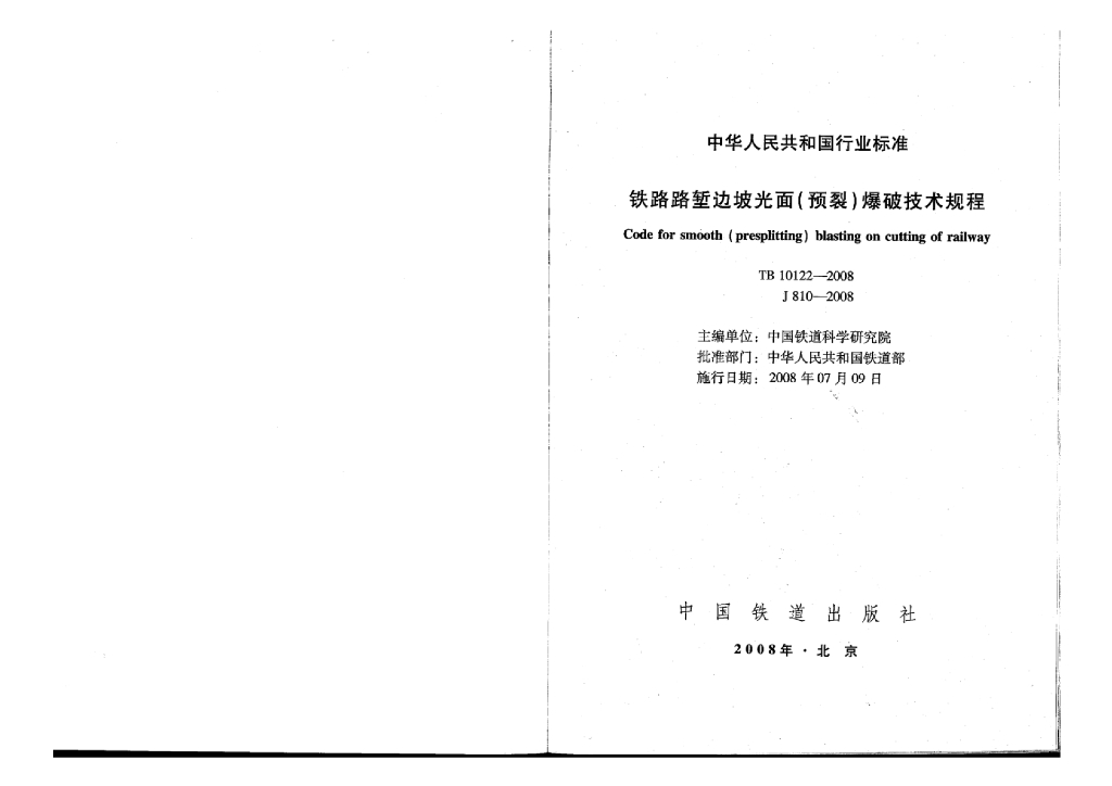 TB 10122-2008 铁路路堑边坡光面(预裂)爆破技术规程