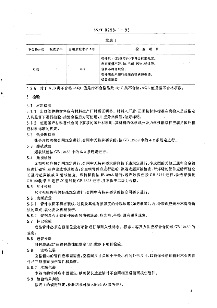 SN/T 0258.1-1993 出口通用钢制管件检验规程
