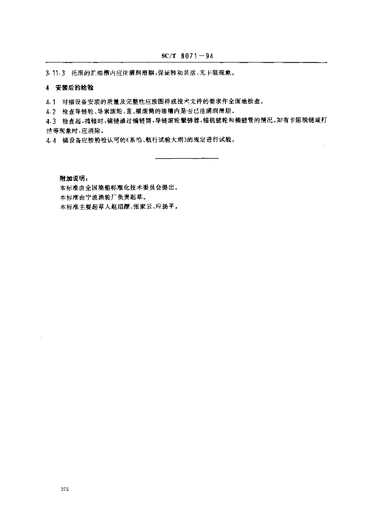 SC/T 8071-1994 渔船锚设备安装技术要求