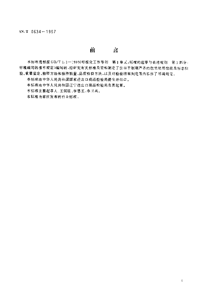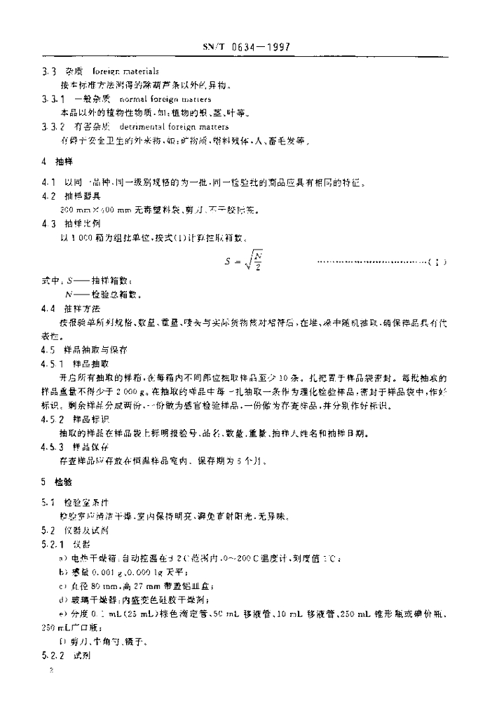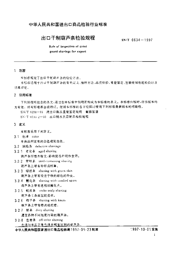 SN/T 0634-1997 出口干制葫芦条检验规程