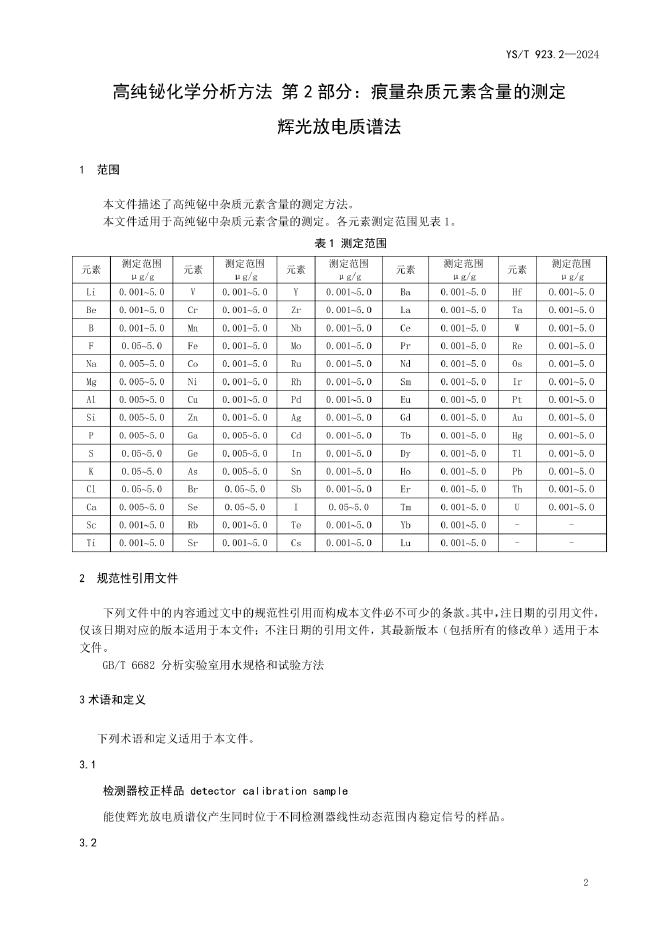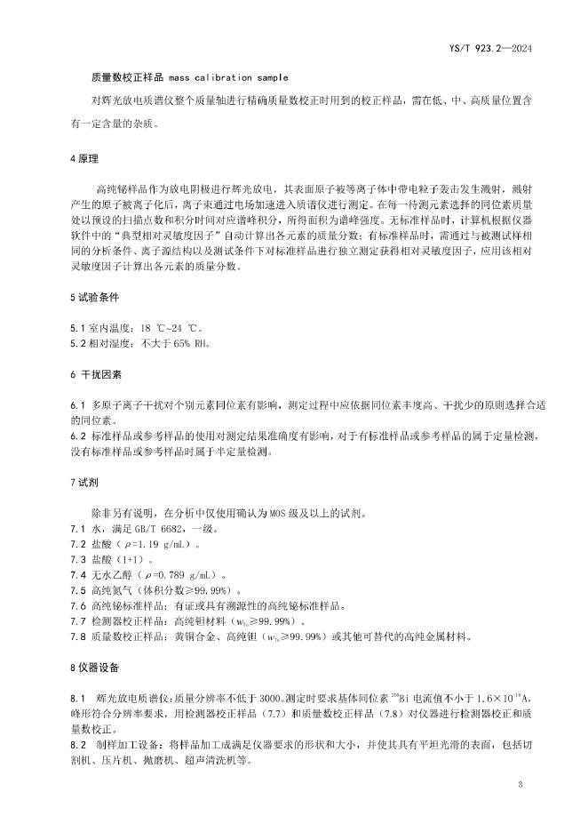 YS/T 923.2-2024 高纯铋化学分析方法 第2部分:痕量杂质元素含量的测定 辉光放电质谱法