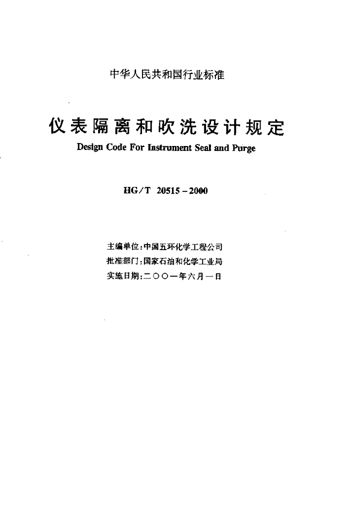 HG/T 20515-2000 仪表隔离和吹洗设计规定