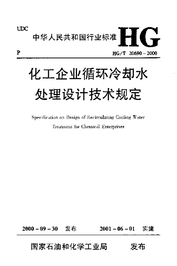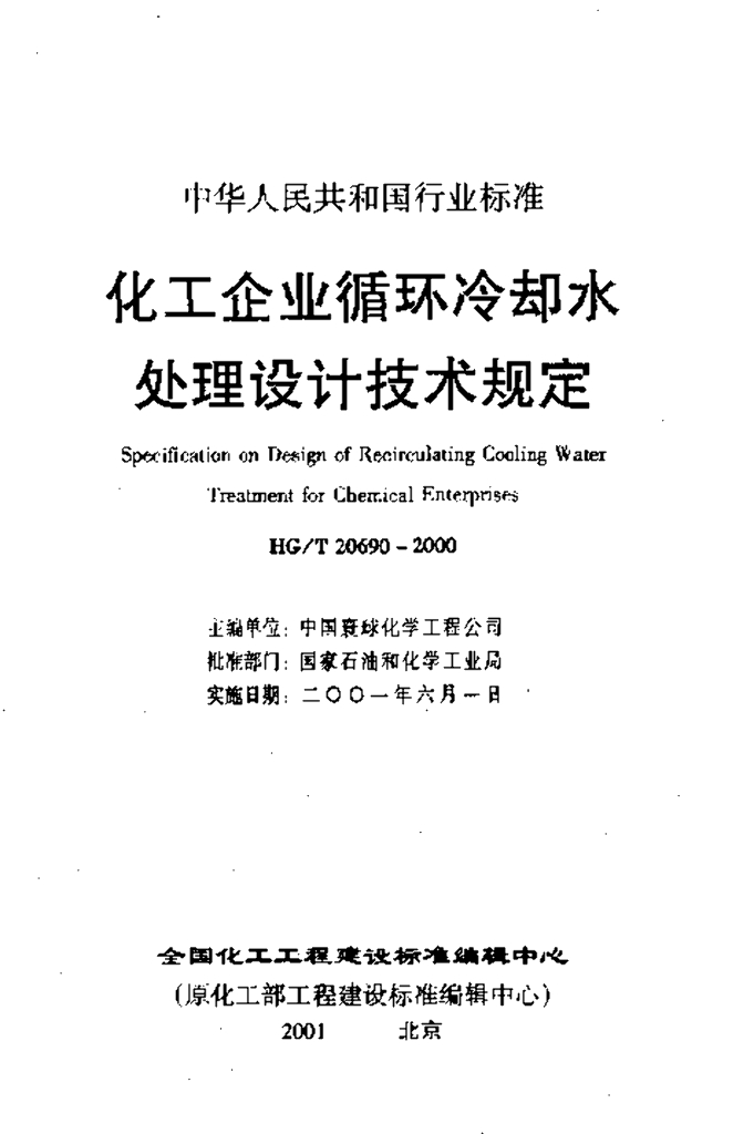 HG/T 20690 2000 化工企业循环冷却水处理设计技术规定