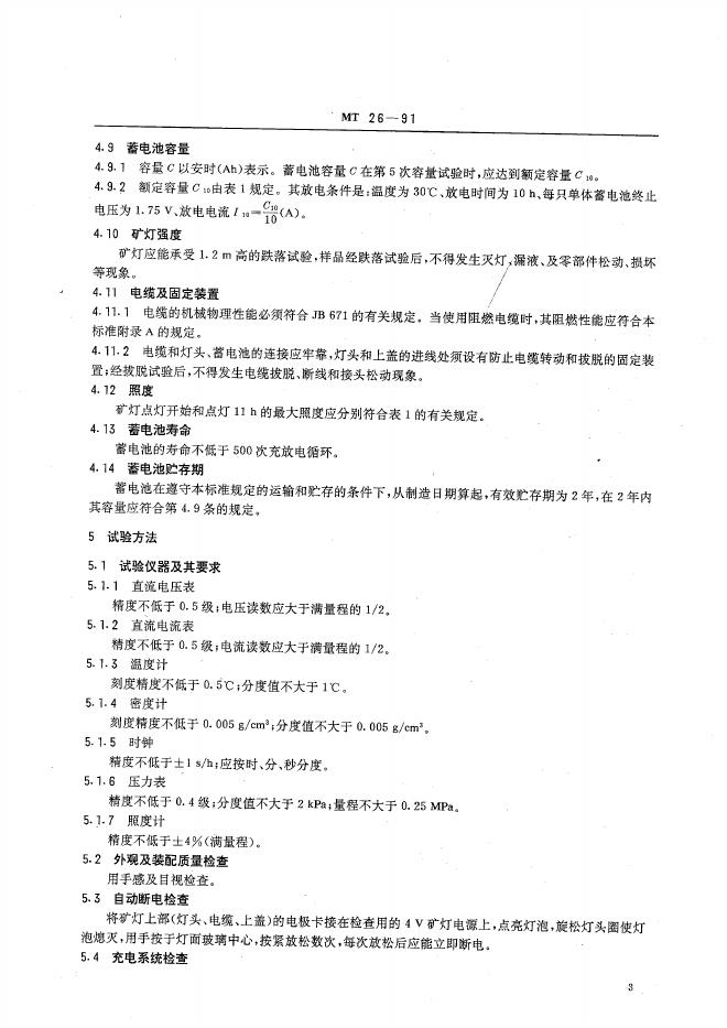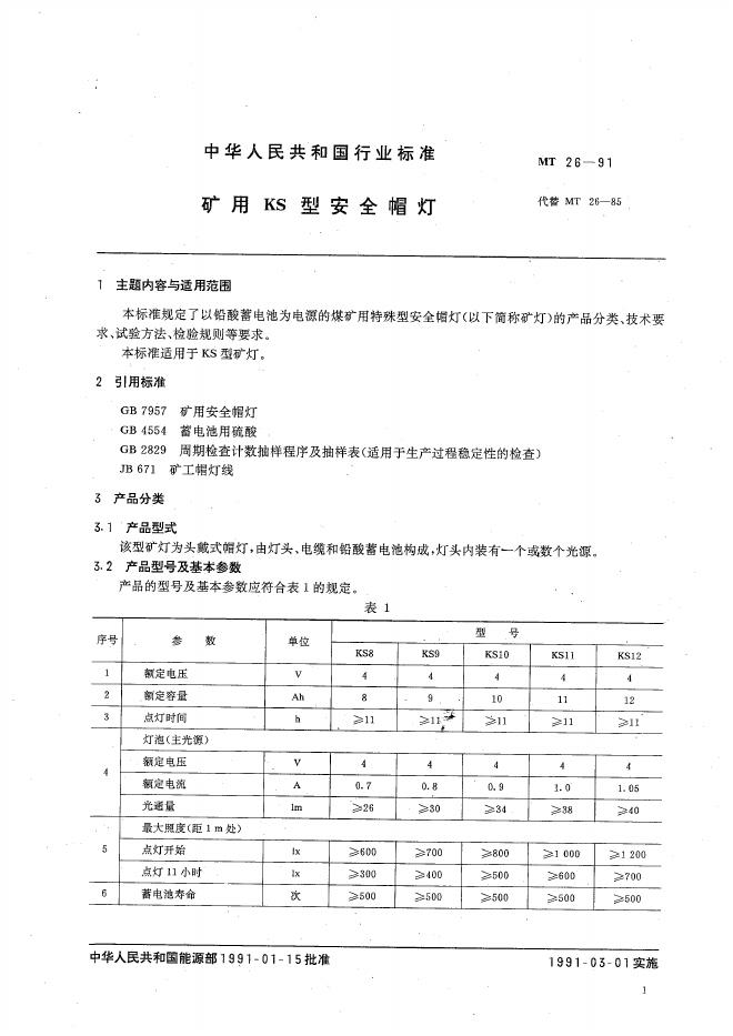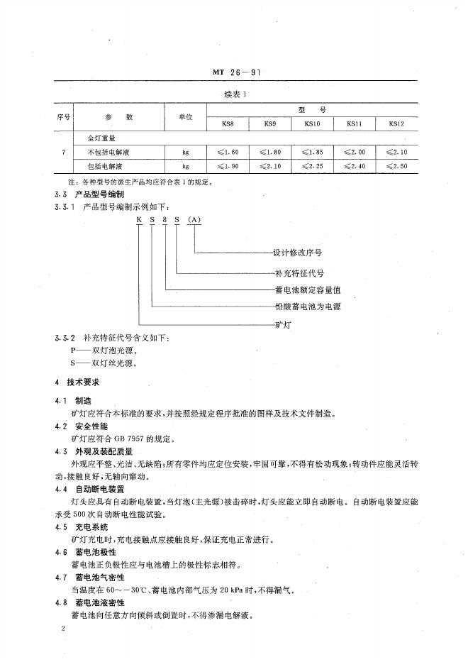 MT 26-1991 矿用KS型安全帽灯