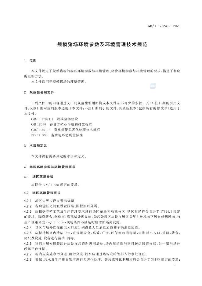 GB/T 17824.3-2026 规模猪场环境参数及环境管理技术规范